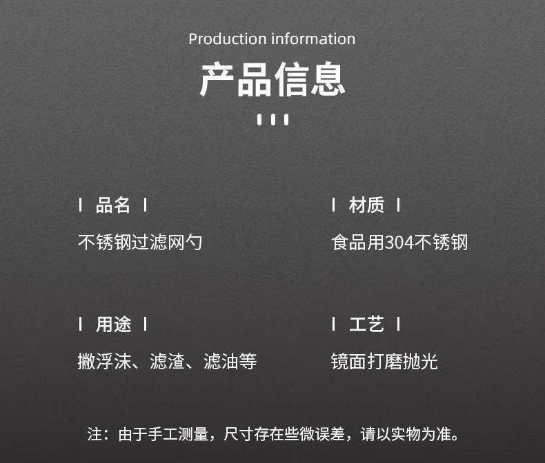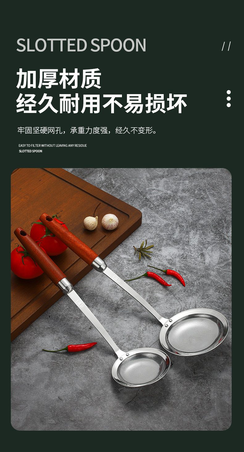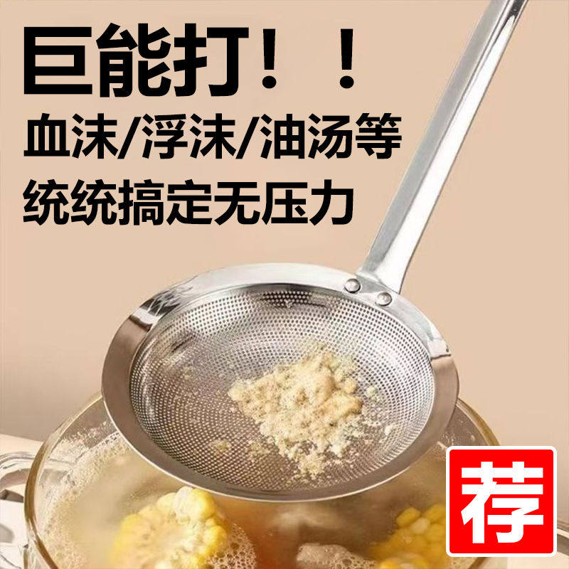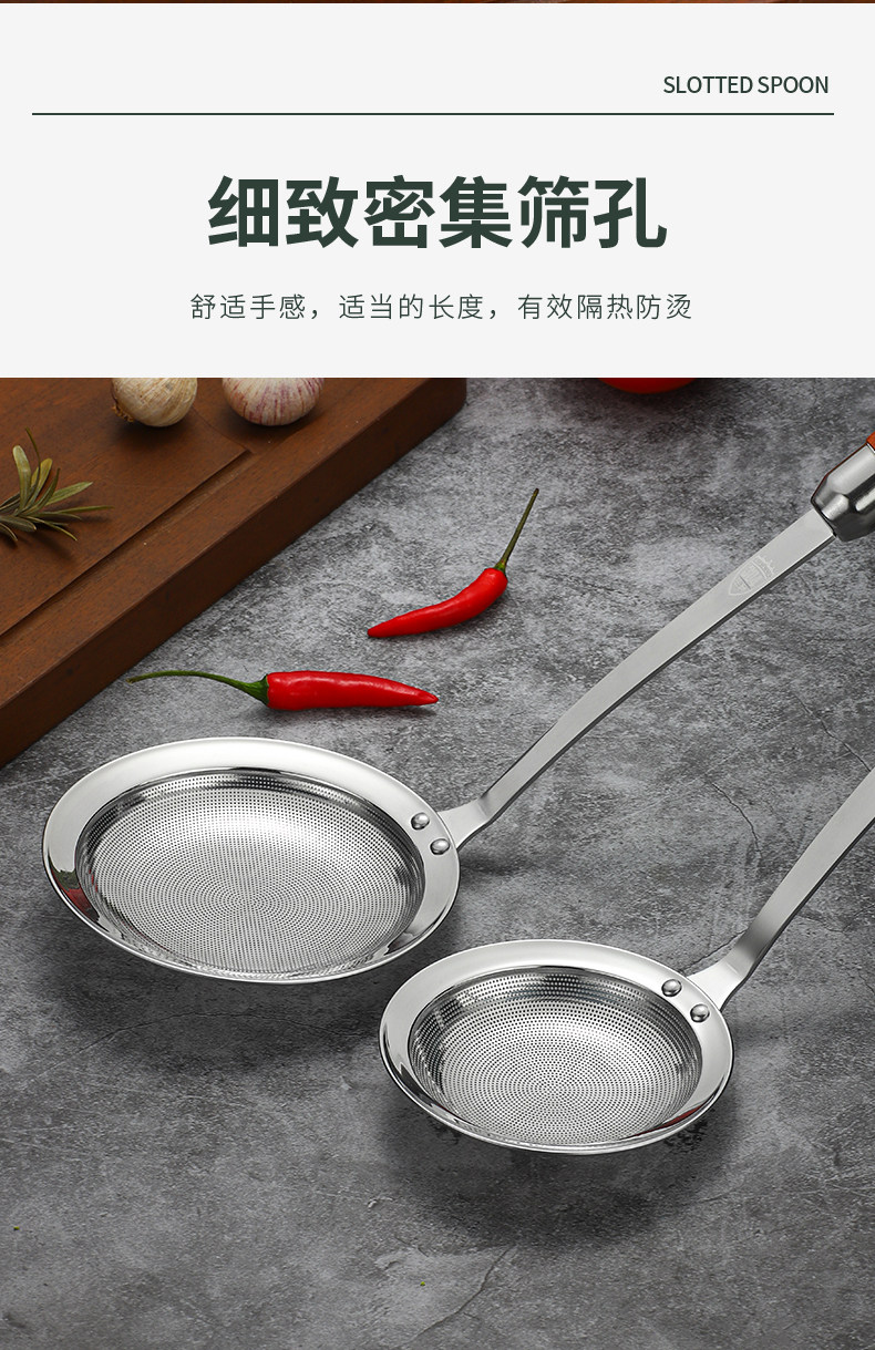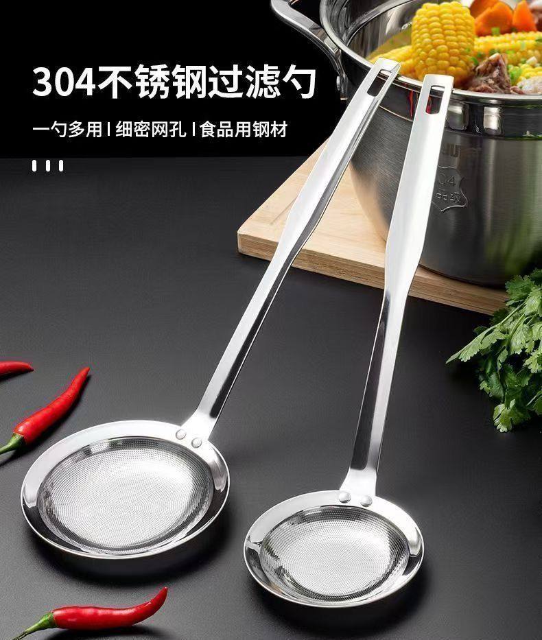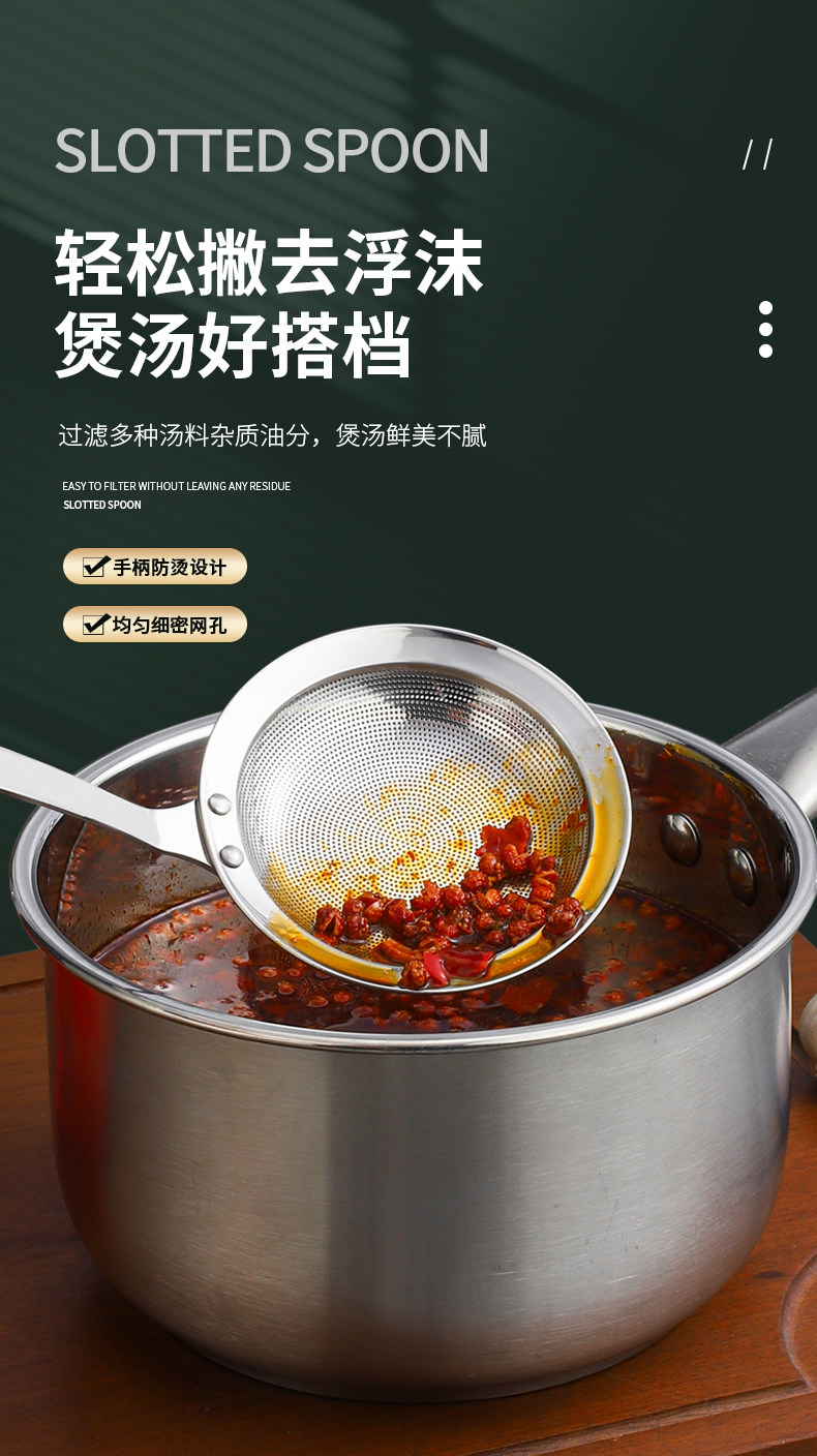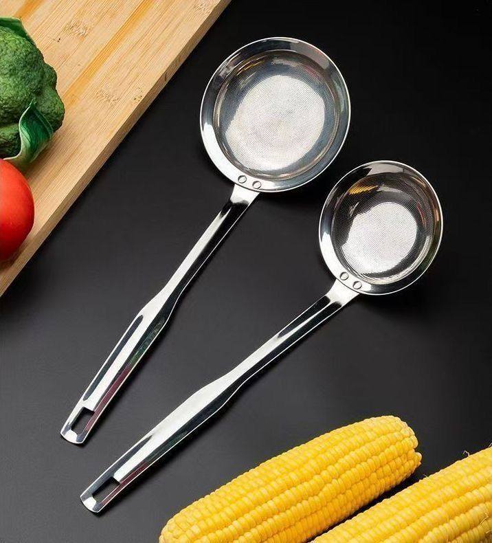 Food-Grade 304 Stainless Steel Skimmer Spoon for Home Kitchen Use, Oil Skimming Spoon, Oil Separator Mesh Spoon, Fine Mesh Frying Spoon