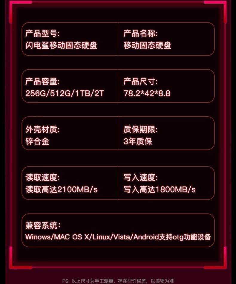 | Color Classification | Main Picture [High Speed 2100M/Sec],Special Offer [High Speed 2000M/S],Main Image Style: [High-Speed 2100Mb/S] + Shockproof Case,Special Offer [High Speed 2100M/S] + Shockproof Bag,Main Image Style: [High-Speed 2100Mb/S] + Apple Otg Adapter,Special Offer [High Speed 2100M/S] + Apple Otg Converter,Main Image Style: [High-Speed 2100M/S] + Customization Available,Main Image Style: [High-Speed 2100Mb/S] + Magnetic Protective Case,256g Speed 1800m, 512G/1Tb/2Tb Speed 2100m |