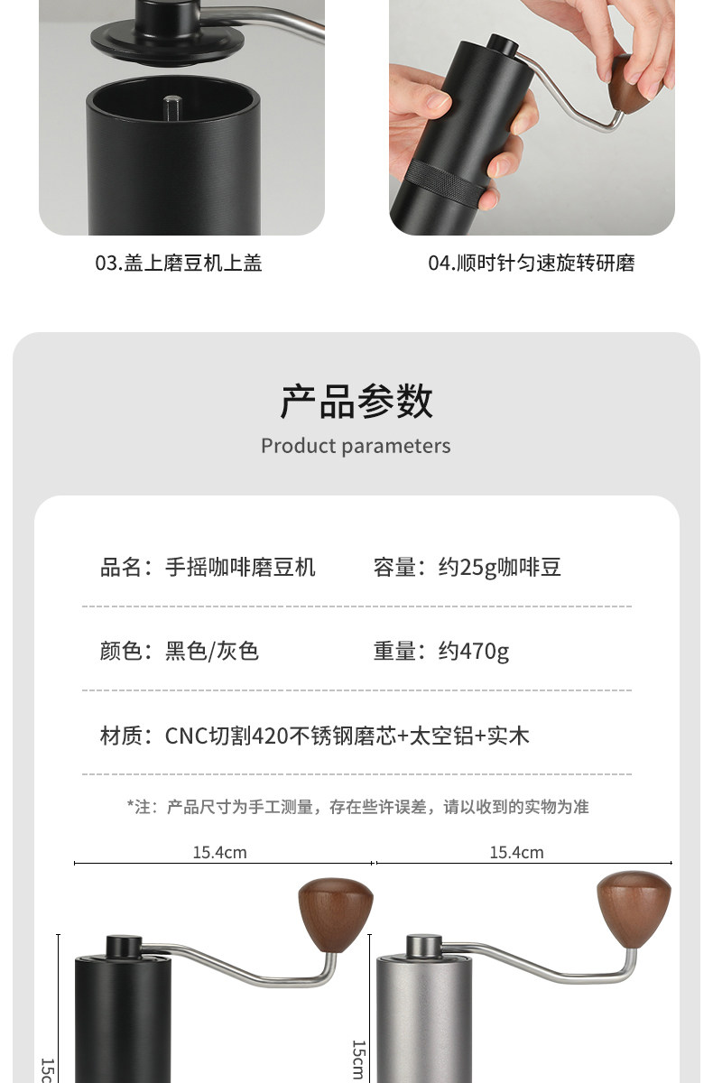 Mongdio Hand-Cranked Coffee Grinder Portable Coffee Bean Grinder Manual Coffee Grinder