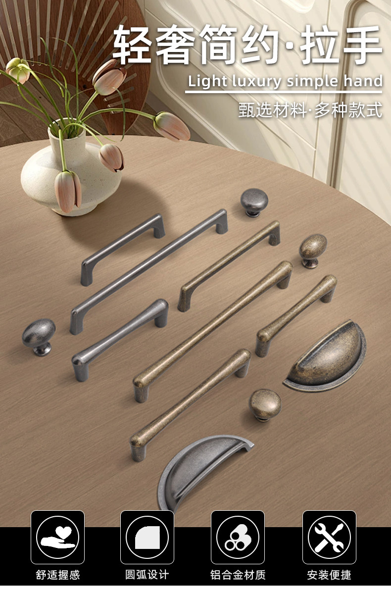 Small Wardrobe Door Handle, Drawer Cabinet, Cupboard, French-Style Handle, Aluminum Alloy, Modern Simple Large Flower Handle