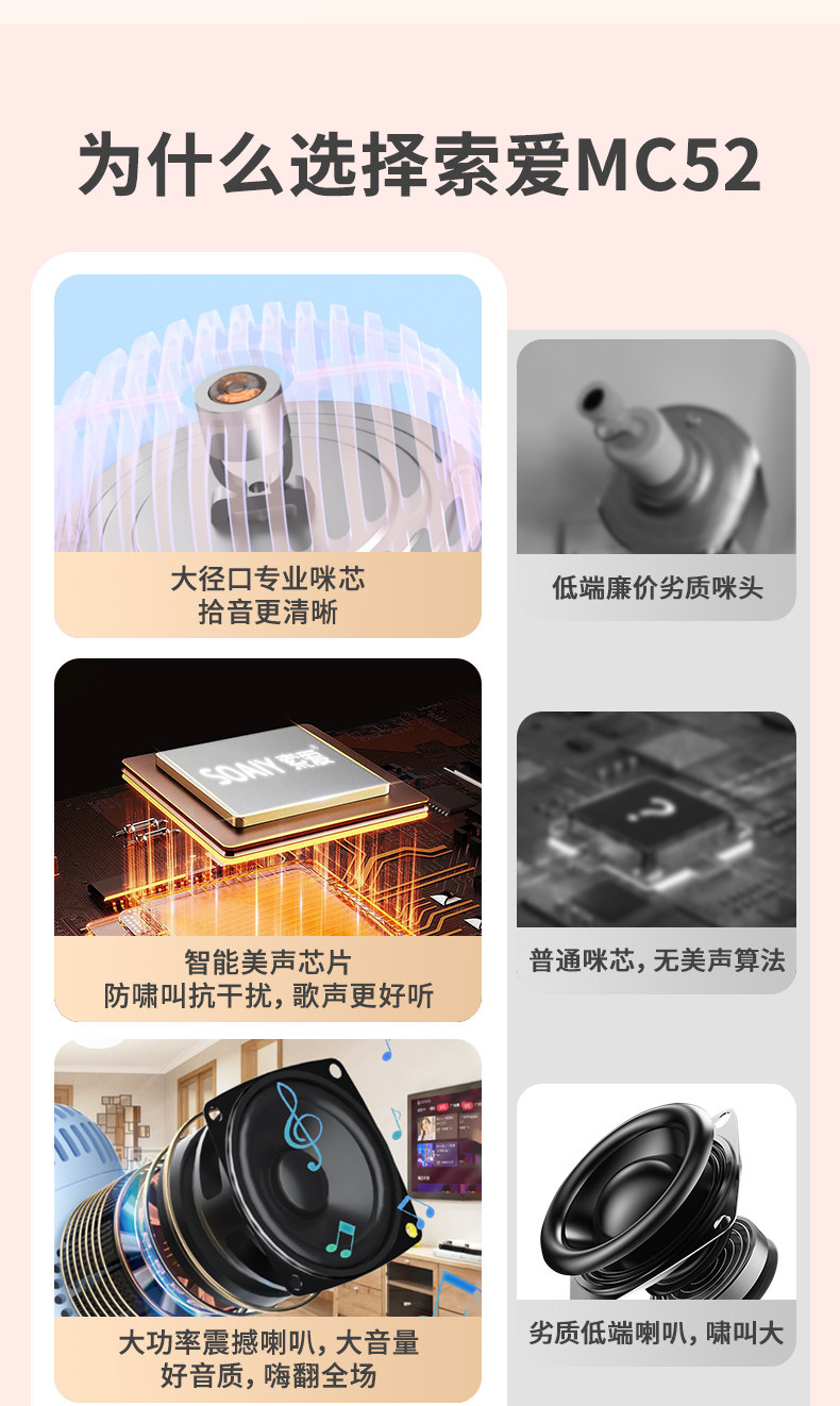 Soaiy Sony Ericsson Mc52 Microphone and Speaker Integrated Microphone for Home Karaoke Wireless Mobile Phone Bluetooth Children's Amplifier