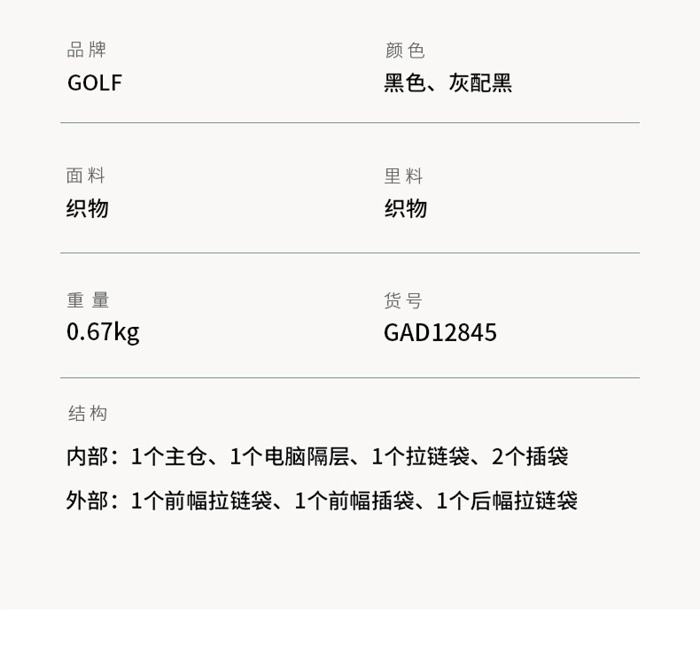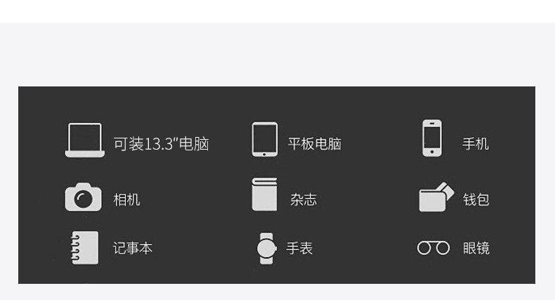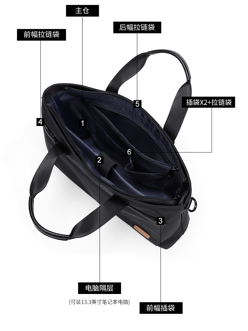 | Internal Structure | Main Bag,Cell Phone Bag,Zipper Pocket,Laminated Zipper Bag,Computer Pocket,Certificate Slot |