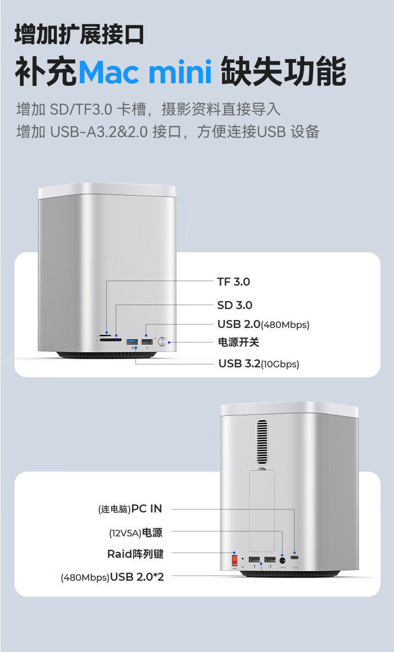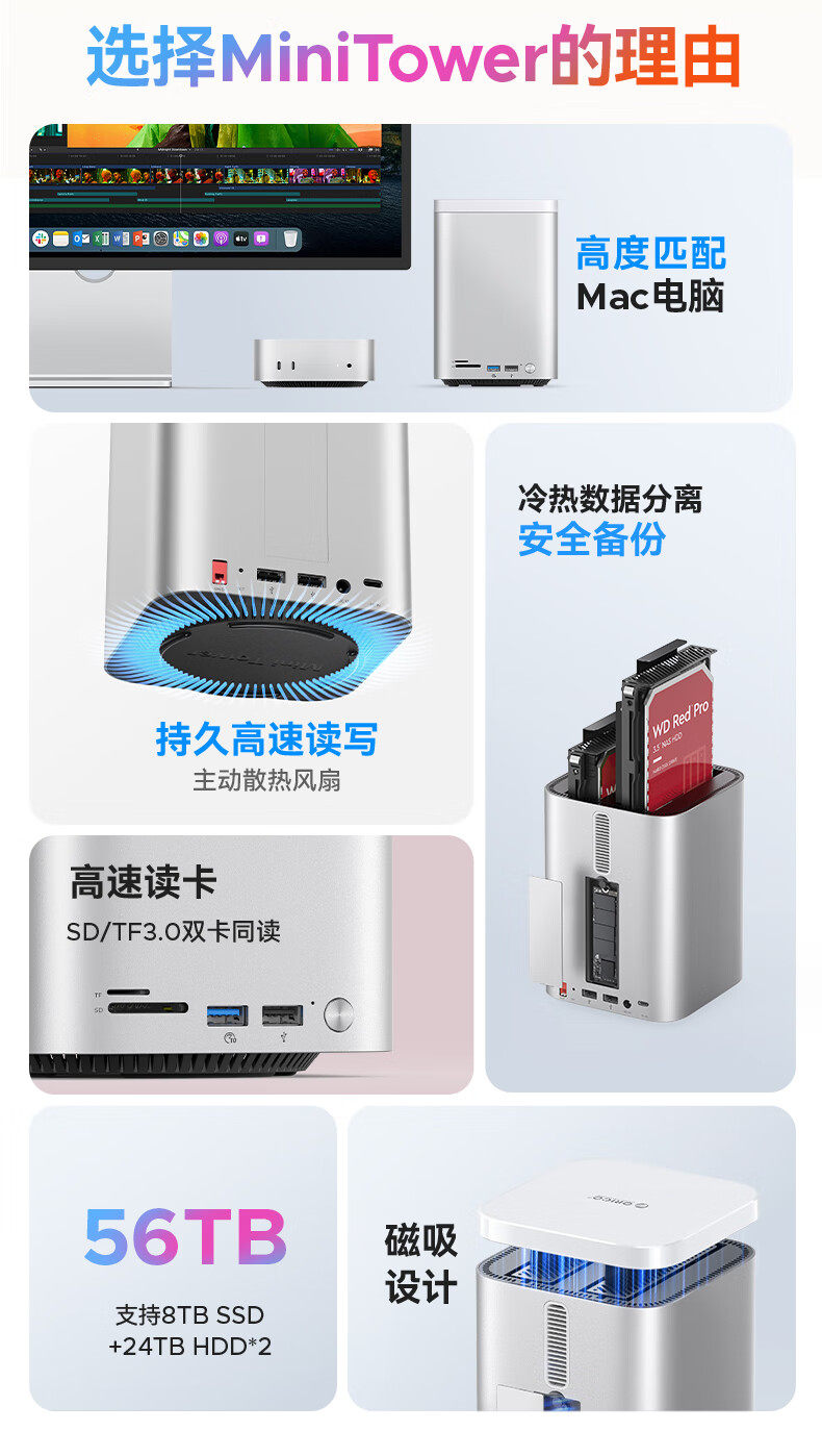 Orrick Minitower Is Suitable for Macmini Expansion Dock Mechanical Hard Drive Array Cabinet M4 Dual-Bay Disk Box