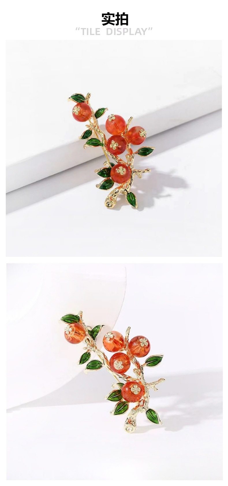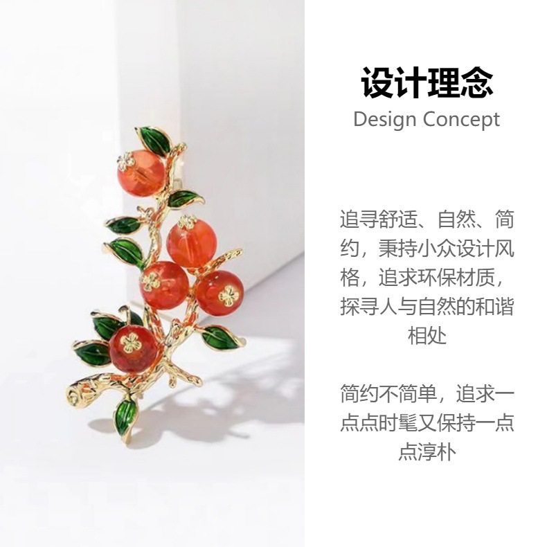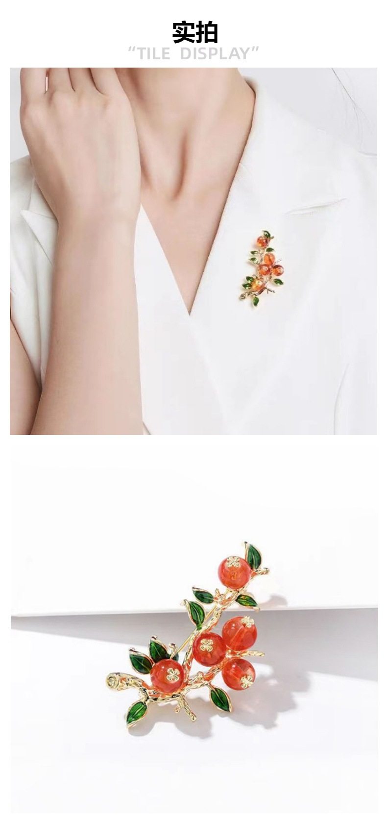 Chinese-Style Persimmon Brooch, High-End Women's Luxury Glass Pin, Good Things Happen, Fruit Corsage Accessory, Trendy