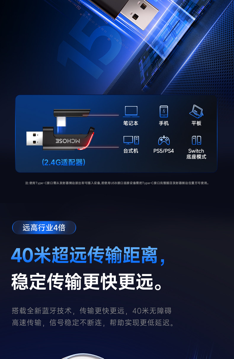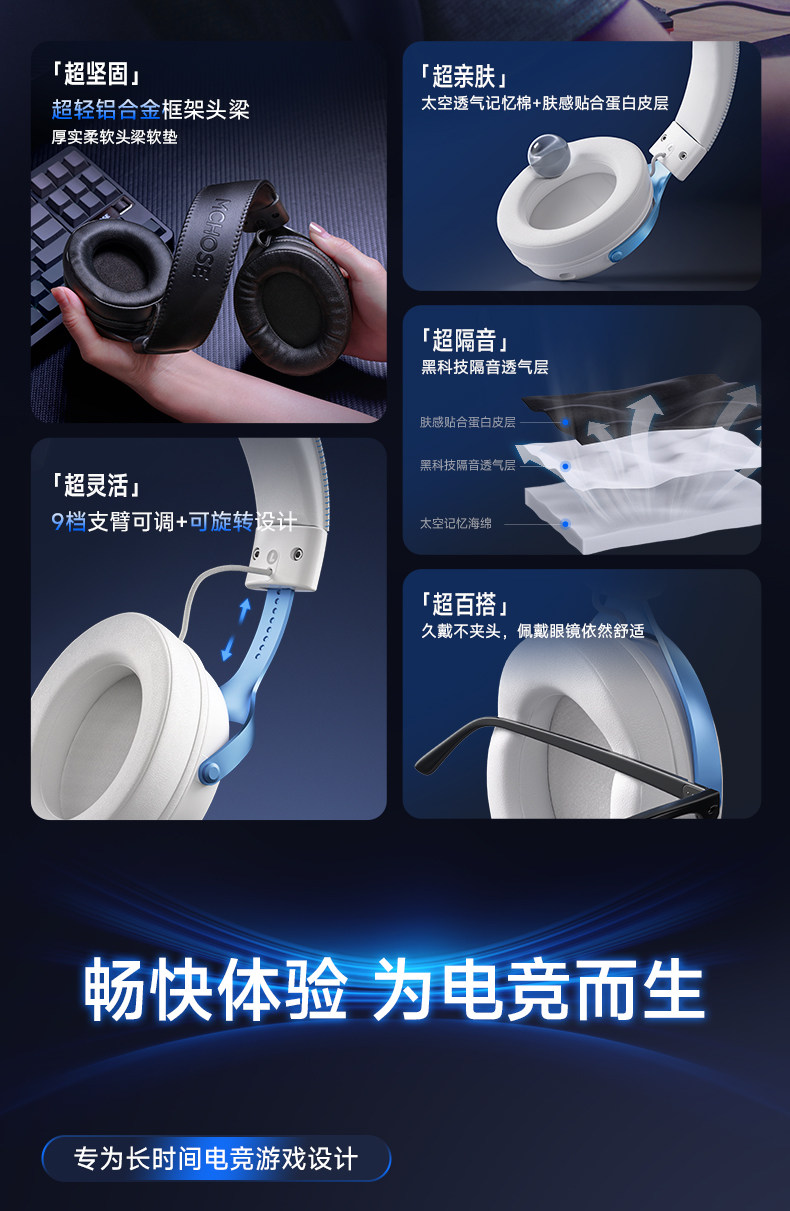 Mchose V9 Pro Gaming Headset Over-Ear Four-Mode Gaming Bluetooth Computer with Microphone Wireless Delta
