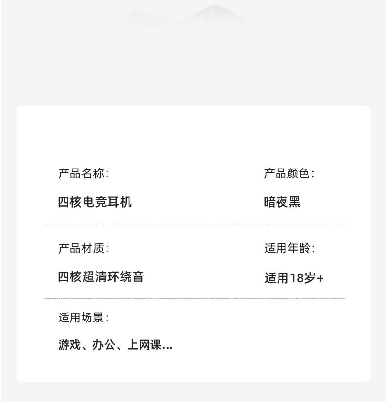 | Color Classification | USB[Candle Dragon Yahei]Rt-18X Quad Core 7.1High-Fidelity Sound Effect + Omnidirectional Ultra-Clear Microphone + Enc Dual Microphone Noise Reduction,USB[Starry Silver]Rt-18X Quad Core 7.1High-Fidelity Sound Effect + Omnidirectional Ultra-Clear Microphone + Enc Dual Microphone Noise Reduction,3.5MM[Candle Dragon Yahei]Rt-18X Quad Core 7.1High-Fidelity Sound Effect + Omnidirectional Ultra-Clear Microphone + Enc Dual Microphone Noise Reduction,3.5MM[Starry Silver]Rt-18X Quad Core 7.1High-Fidelity Sound Effect + Omnidirectional Ultra-Clear Microphone + Enc Dual Microphone Noise Reduction,[Enjoy Seconds of Hair When You Place an Order],[Good Quality, Dare to Promise]30 Days Free Trial,Suitable for FPS games or various steam3A masterpieces 丨Black Myth Wukong/Cross Fire/LOL/pubg chicken listening and positioning/Eternal Calamity/Fearless Contract/World of Tanks/and other mainstream games |