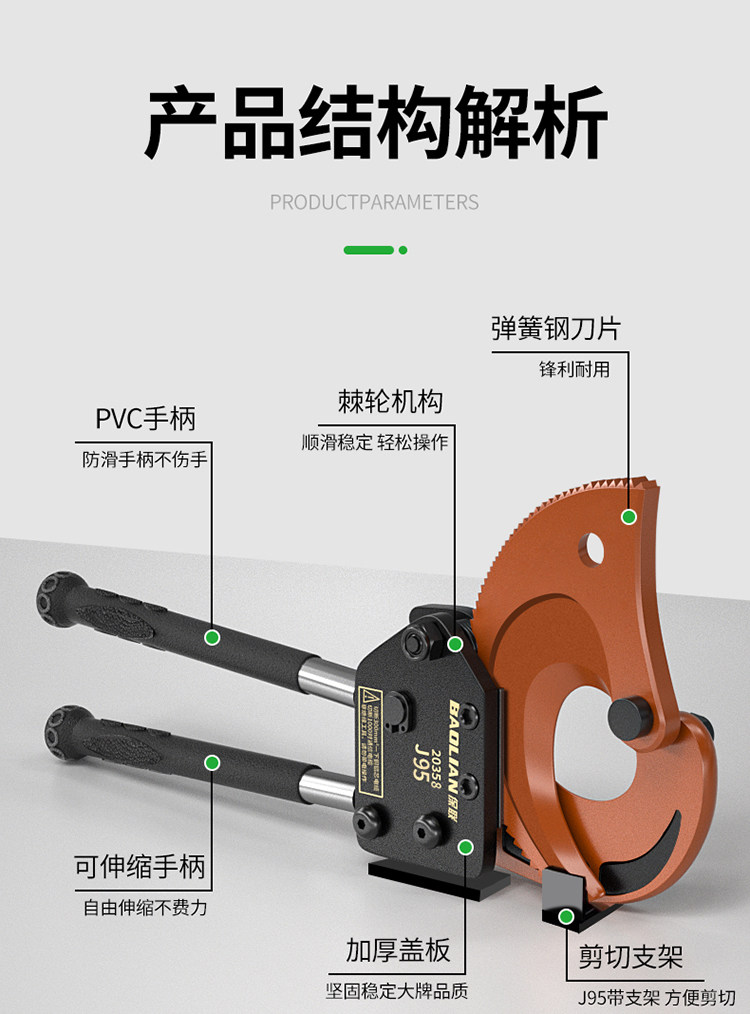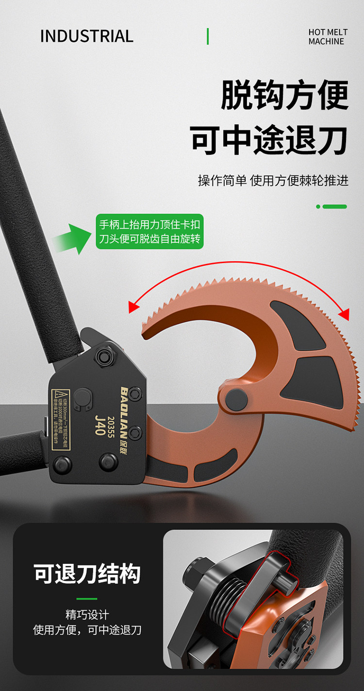 Baolian Ratchet Cable Cutter Gear-Type Scissors Cable-Specific Cutter Wire Cutting Pliers Copper Aluminum Steel Electrician Wire Cutting Pliers
