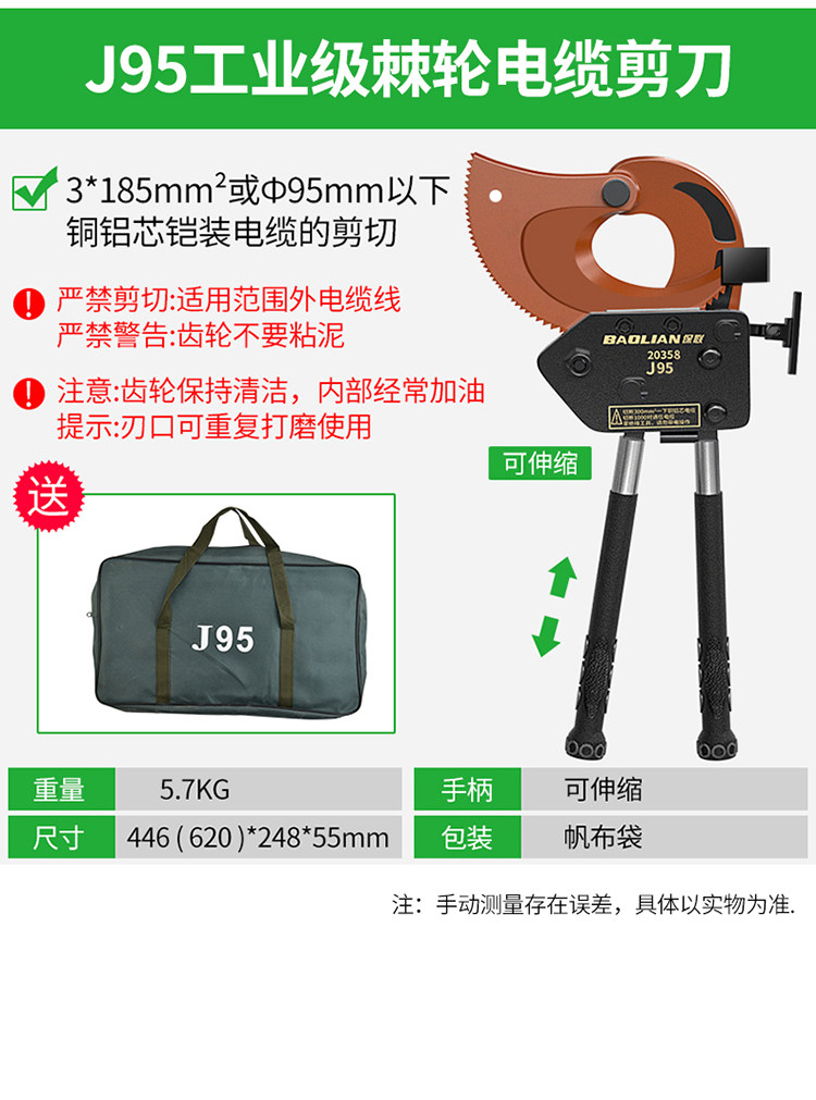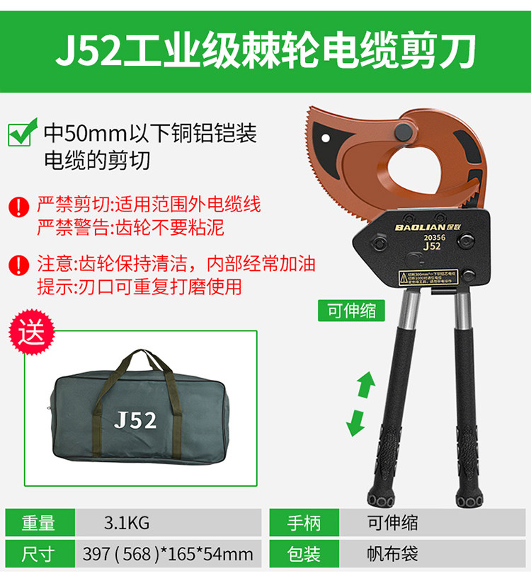 | Color Classification | J40 Industrial Grade Ratchet Cable Scissors + Tool Kit,J52 Industrial Grade Ratchet Cable Scissors + Tool Kit,J75 Industrial Grade Ratchet Cable Scissors + Tool Kit,J95 Industrial Grade Ratchet Cable Scissors + Tool Kit,J40 Ratchet Cable Cutter Three-Piece Set,J52 Ratchet Cable Cutter Three-Piece Set,J75 Ratchet Cable Cutter Three-Piece Set,J95 Ratchet Cable Cutter Three-Piece Set |