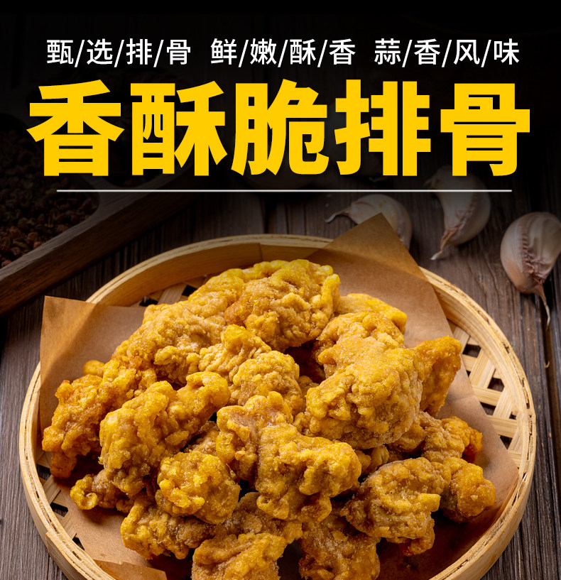 Crispy Pork Ribs Semi-Finished Product, Garlic-Flavored Qiaotou Ribs, Night Market Specialty Fried Snack, Commercial Ingredients for Restaurants