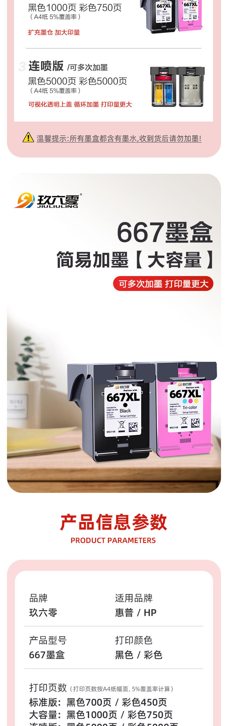 | Color Classification | [700 Pages/Black] 667 Ink Cartridge,[450 Pages/Color] 667 Ink Cartridge,[1150 Pages] 667 Standard Edition Set,[1000 Pages/Black] 667XL Ink Cartridge + 1 Ink,[750 Pages/Color] 667XL Ink Cartridge + 3 Ink,[5000 Pages/Black] Continuous Inkjet Cartridge + Free 1 Ink,[5000 Pages/Color] Continuous Inkjet Cartridge + Free 3 Ink Bottles,【10,000 Pages】667 Continuous Ink System Kit + Free 4 Ink Cartridges |