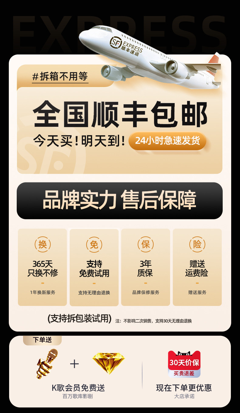 | Color Classification | [Wheat-Free Version◆Karaoke Machine◆Wood Grain Color]No Microphone ※1000W Power Sound Field ※Hifi Sound Quality,[Wheat-Free Version◆Karaoke Machine◆Moonlight White]No Microphone ※1000W Power Sound Field ※Hifi Sound Quality,[Exclusive Version◆Wood Grain Color◆Wooden Speaker]1000W Power Sound System ※Dual Microphones※Hifi Audio Quality※Karaoke & Movie Amplifier※5-In-1,[Exclusive Version◆Moonlight White◆Wooden Speaker]1000W Power Sound System ※Dual Microphones※Hifi Audio Quality※Karaoke & Movie Amplifier※5-In-1,[Deluxe Version◆Wood Grain Color◆Wooden Speaker]5 Speakers ※ 1000W Power Sound Field ※ Dual Microphones ※ Hifi Sound Quality ※ Karaoke Movie Amplifier ※ Five-In-One,[Deluxe Version◆Moonlight White◆Wooden Speaker]5 Speakers ※ 1000W Power Sound Field ※ Dual Microphones ※ Hifi Sound Quality ※ Karaoke Movie Amplifier ※ Five-In-One,[Extreme Version ◆ Wood Grain Color ◆ Wooden Speaker]AI3.0 Voice Song Request ※ 1000W Power Sound Field ※ 5 Speakers ※ Dual Microphones ※ Hifi Sound Quality ※ Karaoke Movie Amplifier ※ Five-In-One,[Extreme Version◆Moonlight White◆Wooden Speaker]AI3.0 Voice Song Request ※ 1000W Power Sound Field ※ 5 Speakers ※ Dual Microphones ※ Hifi Sound Quality ※ Karaoke Movie Amplifier ※ Five-In-One,[Collector's Edition ◆ Wood Grain Color ◆ Wooden Speaker]AI3.0 Voice Song Request ※ 1200W Power Sound Field ※ 5 Speakers ※ Dual Microphones ※ Hifi Sound Quality ※ Karaoke Movie Amplifier ※ Five-In-One,[Collector's Edition◆Moonlight White◆Wooden Speaker]AI3.0 Voice Song Request ※ 1200W Power Sound Field ※ 5 Speakers ※ Dual Microphones ※ Hifi Sound Quality ※ Karaoke Movie Amplifier ※ Five-In-One |