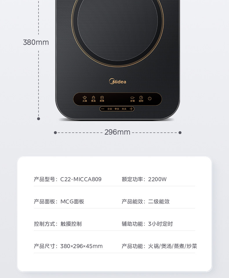Midea Induction Cooker Household Energy-Saving Hot Pot Stir-Fry Small and Light Genuine High-Power Induction Cooker Secondary Energy Efficiency