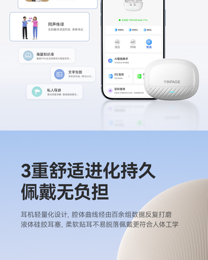 Yinbeiqi Real2Pro Bluetooth Headset Wireless Active Noise Reduction In-Ear Type 2026 New Model High Sound Quality Long Battery Life