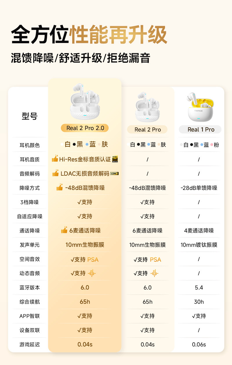 | Color Classification | 【Do Not Purchase This Item - Feature Description】Comprehensive Feature Set,【Add to Favorites + Cart for Exclusive Perks】Priority Shipping & Free Shipping Insurance,Pearl White 2.0 [Hi-Res Gold Label Sound Quality★Ldac Lossless Decoding★-48Db Noise Reduction★6 Mic Call Noise Cancellation★65H Long Battery Life★Adaptive 3-Speed Noise Reduction],Warm Apricot Skin 2.0 [Hi-Res Gold Label Sound Quality★Ldac Lossless Decoding★-48Db Noise Reduction★6 Mic Call Noise Cancellation★65H Long Battery Life★Adaptive 3-Speed Noise Reduction],Abyss Black 2.0 [Hi-Res Gold Label Sound Quality ★ Ldac Lossless Decoding ★ -48Db Noise Reduction ★ 6 Mic Call Noise Cancellation ★ 65H Long Battery Life ★ Adaptive 3-Speed Noise Reduction],Light Reef Blue 2.0 [Hi-Res Gold Label Sound Quality★Ldac Lossless Decoding★-48Db Noise Reduction★6 Mic Call Noise Cancellation★65H Long Battery Life★Adaptive 3-Speed Noise Reduction],Glazed White [-48Db Noise Reduction★6 Mic Call Noise Cancellation★65H Long Battery Life★Adaptive 3-Speed Noise Reduction],Ivory Skin [-48Db Noise Reduction★6 Mic Call Noise Cancellation★65H Long Battery Life★Adaptive 3-Speed Noise Reduction],Obsidian Black [-48Db Noise Reduction★6 Mic Call Noise Cancellation★65H Long Battery Life★Adaptive 3-Speed Noise Reduction],Sapphire Blue [-48Db Noise Reduction ★ 6 Mic Call Noise Cancellation ★ 65H Long Battery Life ★ Adaptive 3-Speed Noise Reduction] |