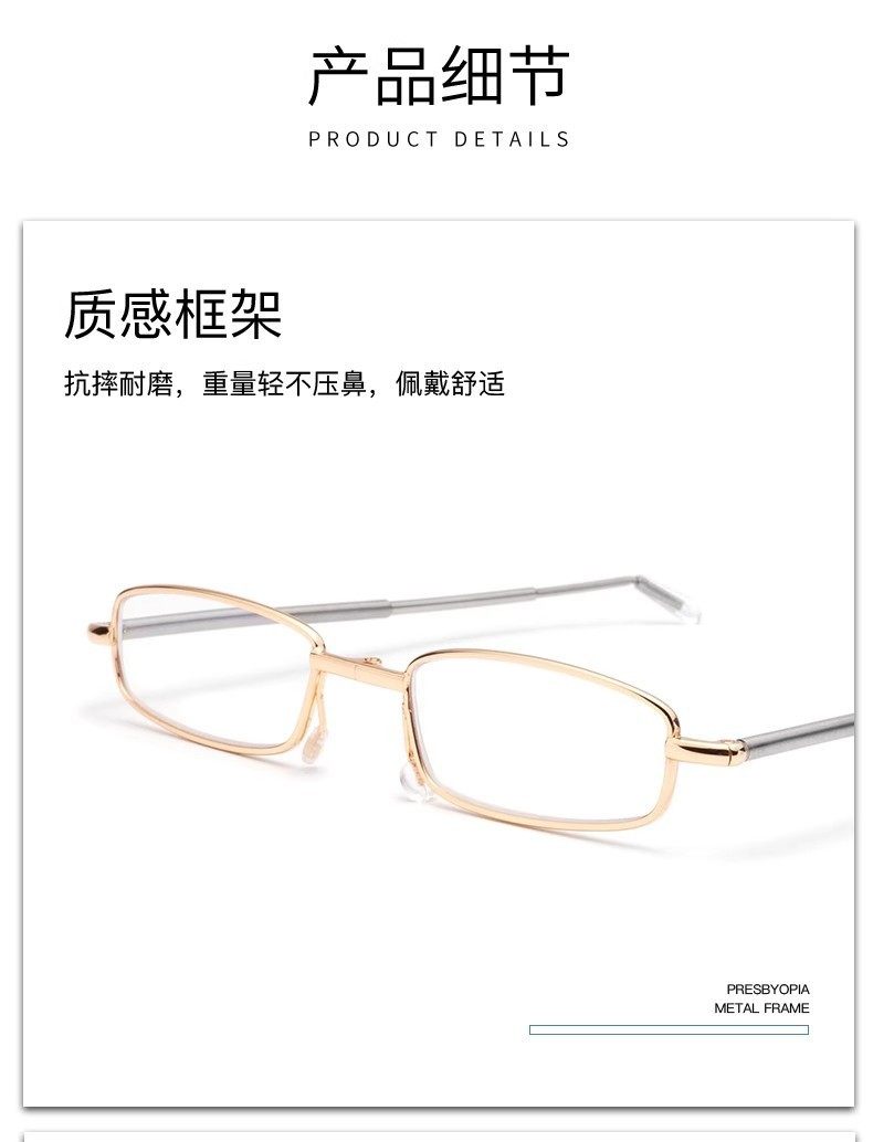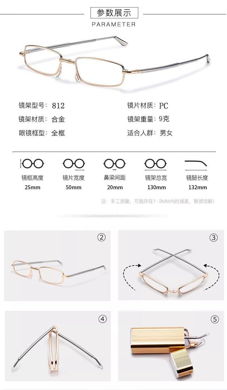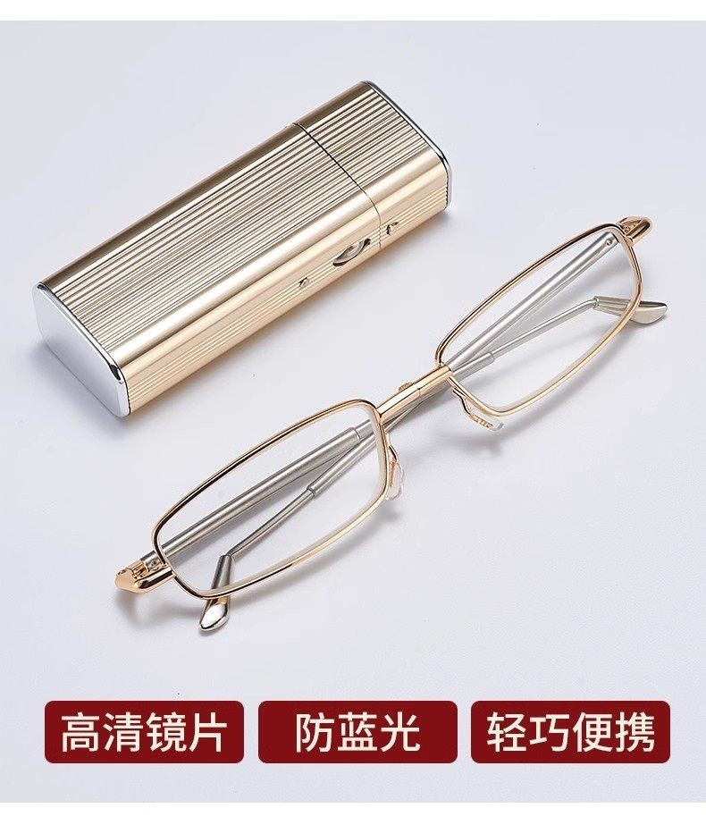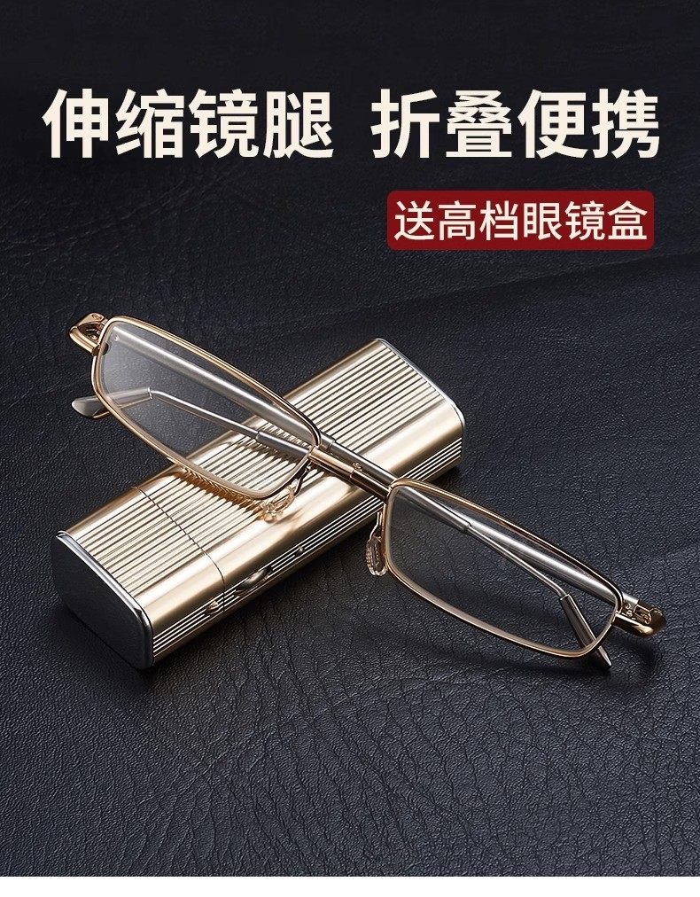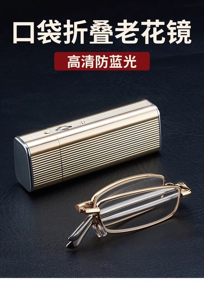 Anti-Blue Light Foldable Reading Glasses for Men, High-Definition, Ultra-Light, Convenient, Farsightedness Glasses for Women, Retro Small-Frame Presbyopic Glasses