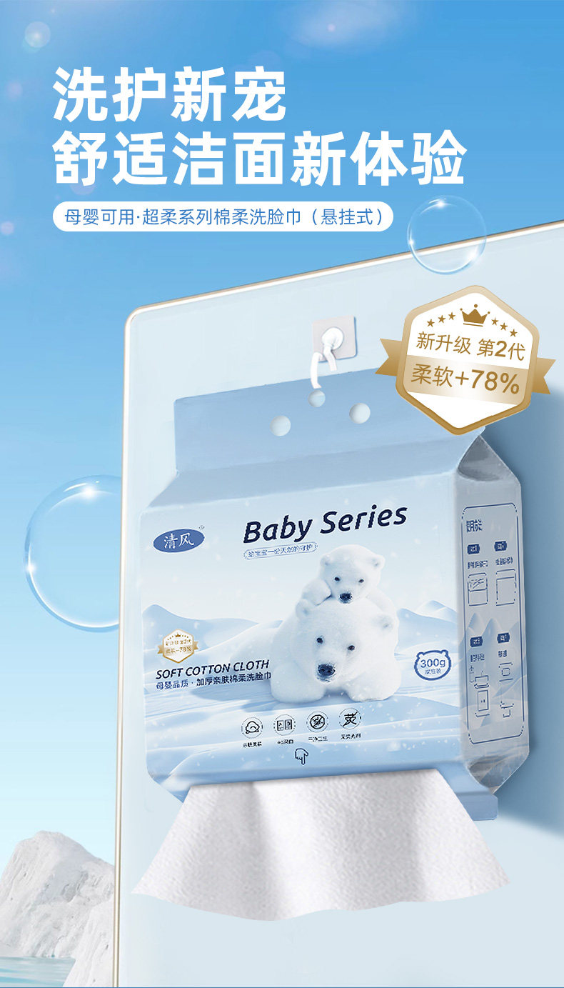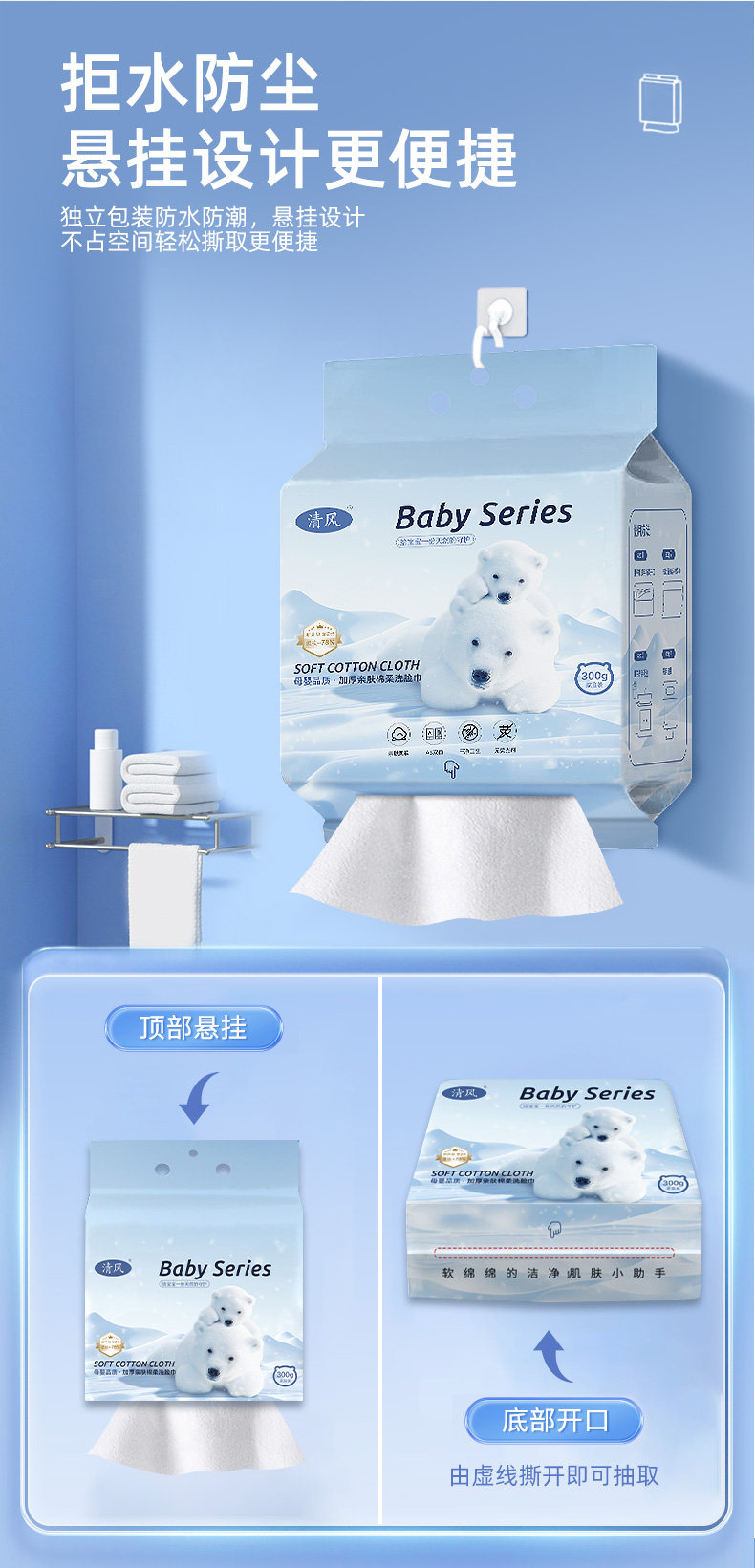 Qingfeng Face Wash Cloth for Infants and Children, Thickened, Skin-Friendly, Soft Towel, Newborn Baby Disposable Cleansing Towel, Baby Cloud Soft