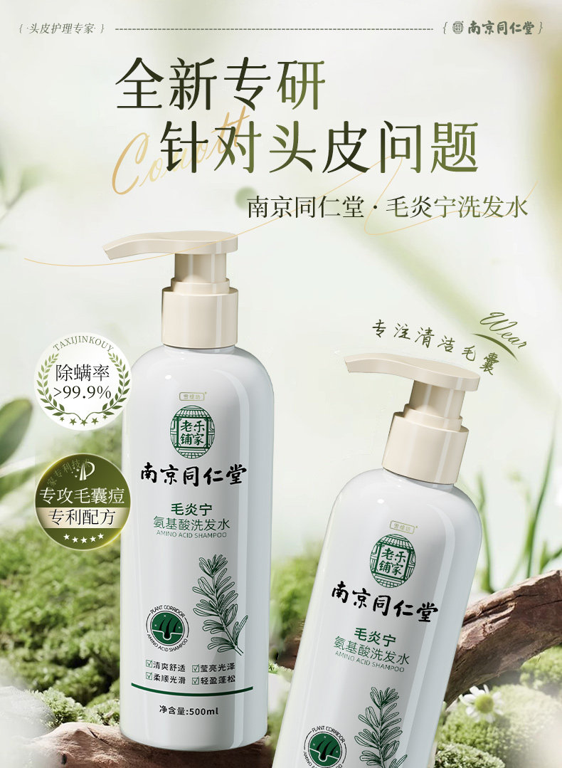Folliculitis Shampoo, Oil Control, Fluffy, Anti-Dandruff, Anti-Mite, Scalp Cleansing, Anti-Itching, Amino Acid Genuine Shampoo for Men and Women