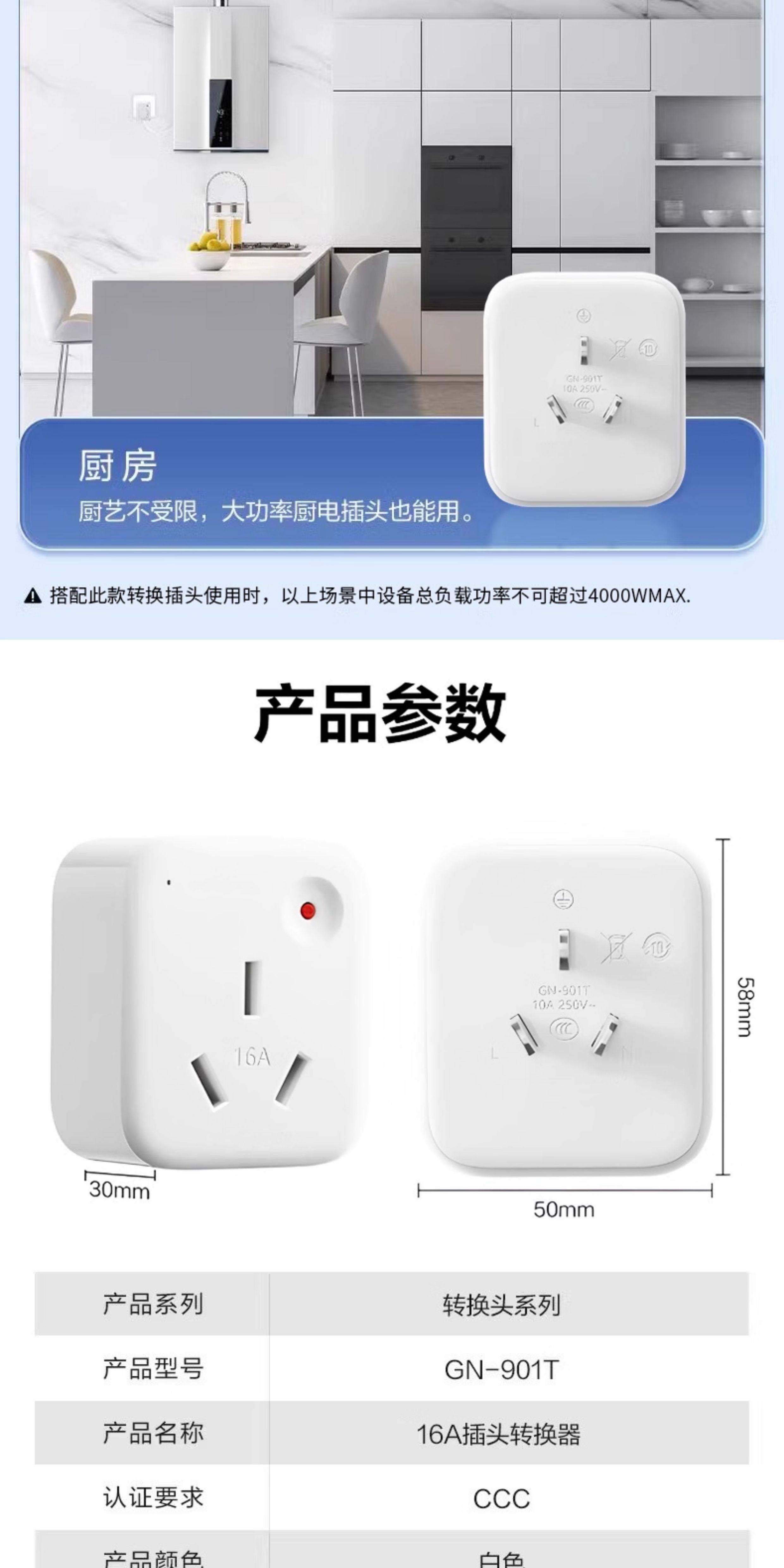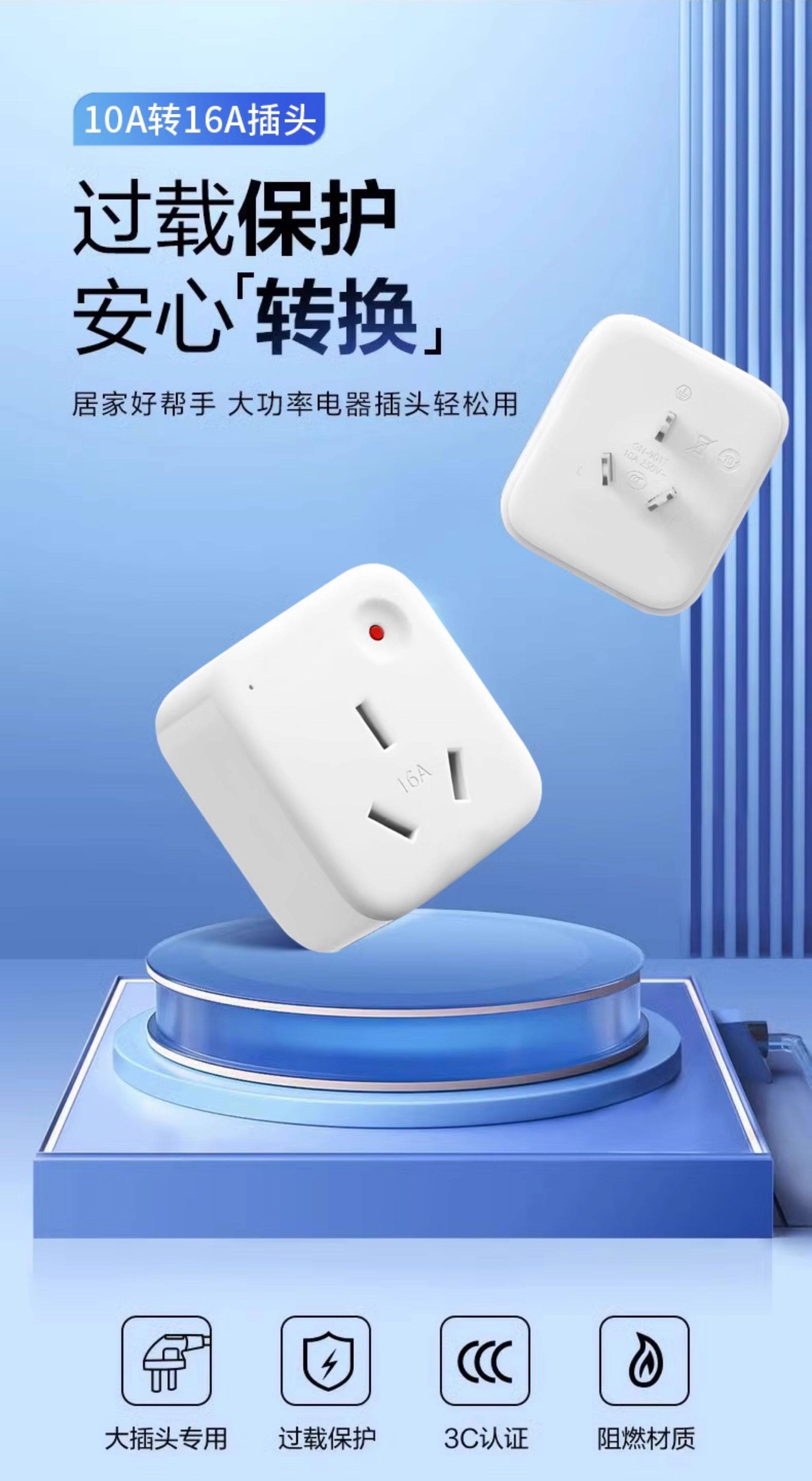4000W High-Power 10A to 16A Socket Converter for Water Heaters, Air Conditioners, Ovens, Integrated Stoves, 16A Plug