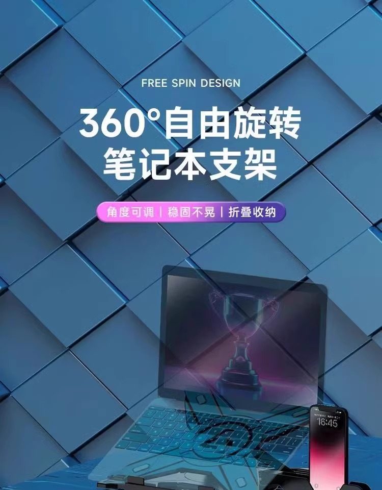 360-Degree Rotatable Laptop Stand Pad for Dormitory, Portable, Suspended, Cooling, Adjustable Height, Foldable, Elevated Stand