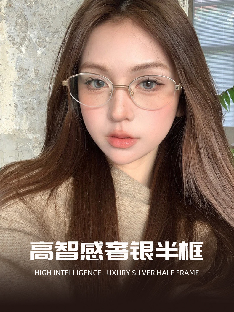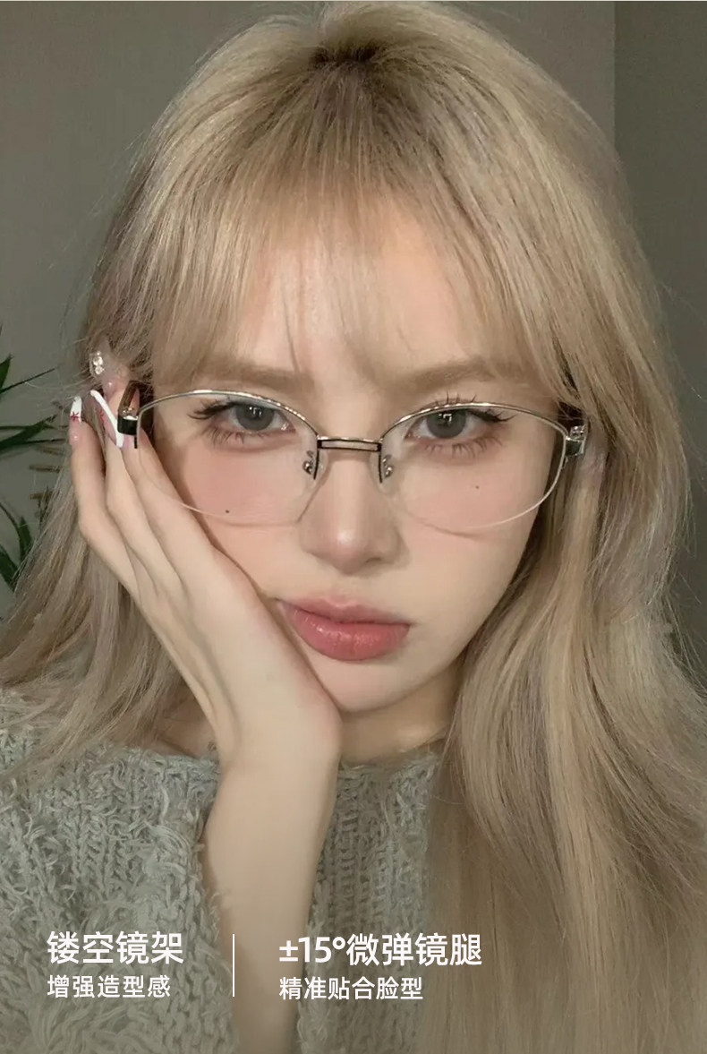 Old Money Style Half-Frame Glasses for Nearsighted Women, Customizable Prescription, Oval Gray Series, Ultra-Light Gold Wire Glasses, No-Makeup Essential