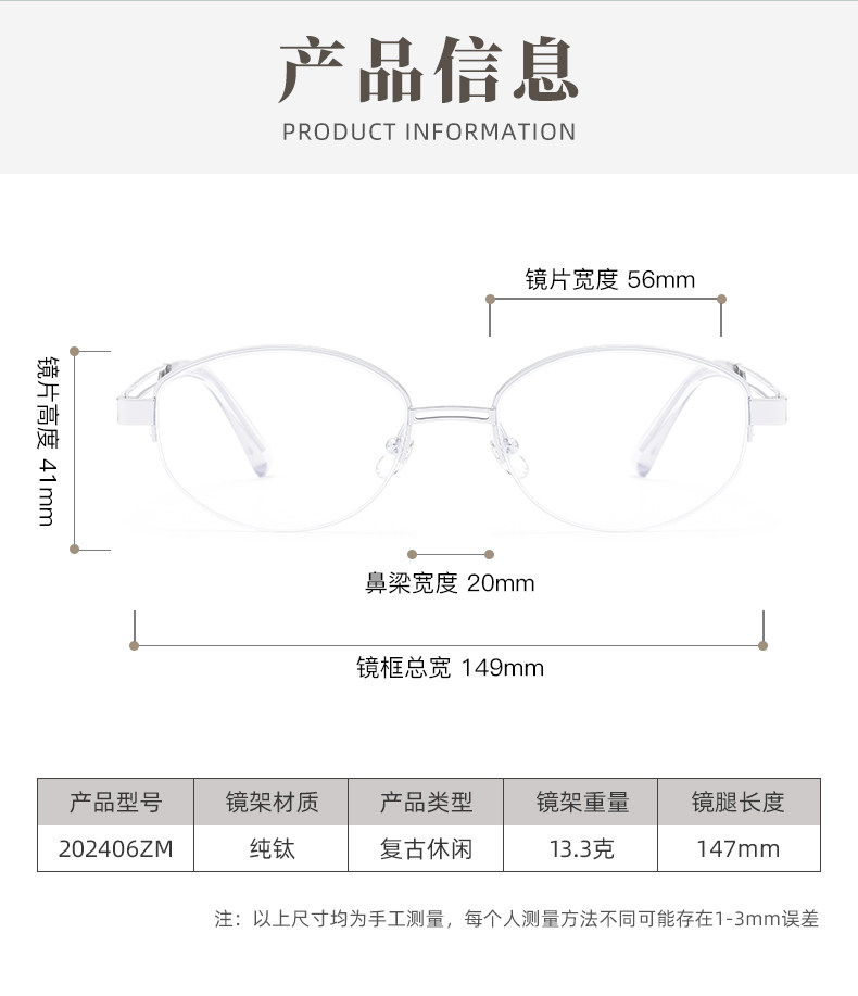 | Color Classification | 202406Zm Silver (High Quality Pure Titanium Material),202406Zm Gold (High Quality Pure Titanium Material),202406Zm Black (High Quality Pure Titanium Material),【Add to Favorites + Add to Cart】Get a Free Eyeglass Accessory Kit + Priority Shipping |