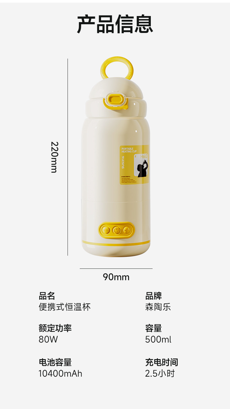Portable Constant Temperature Kettle for Making Baby Formula on the Go, Wireless Water Boiling Constant Temperature Cup, Insulated Kettle, Milk Preparation Tool