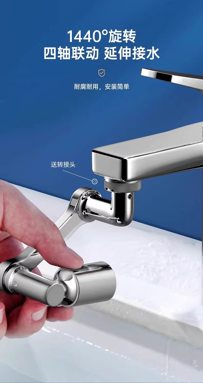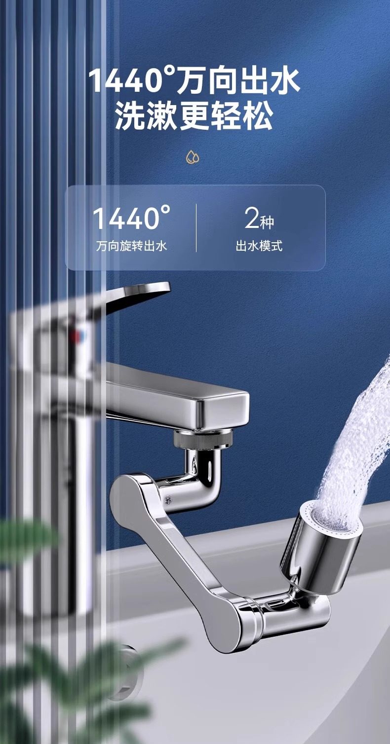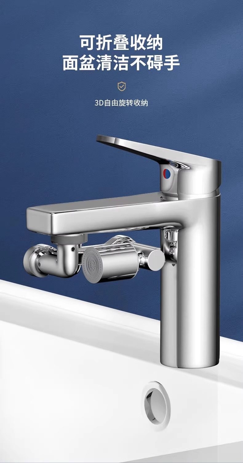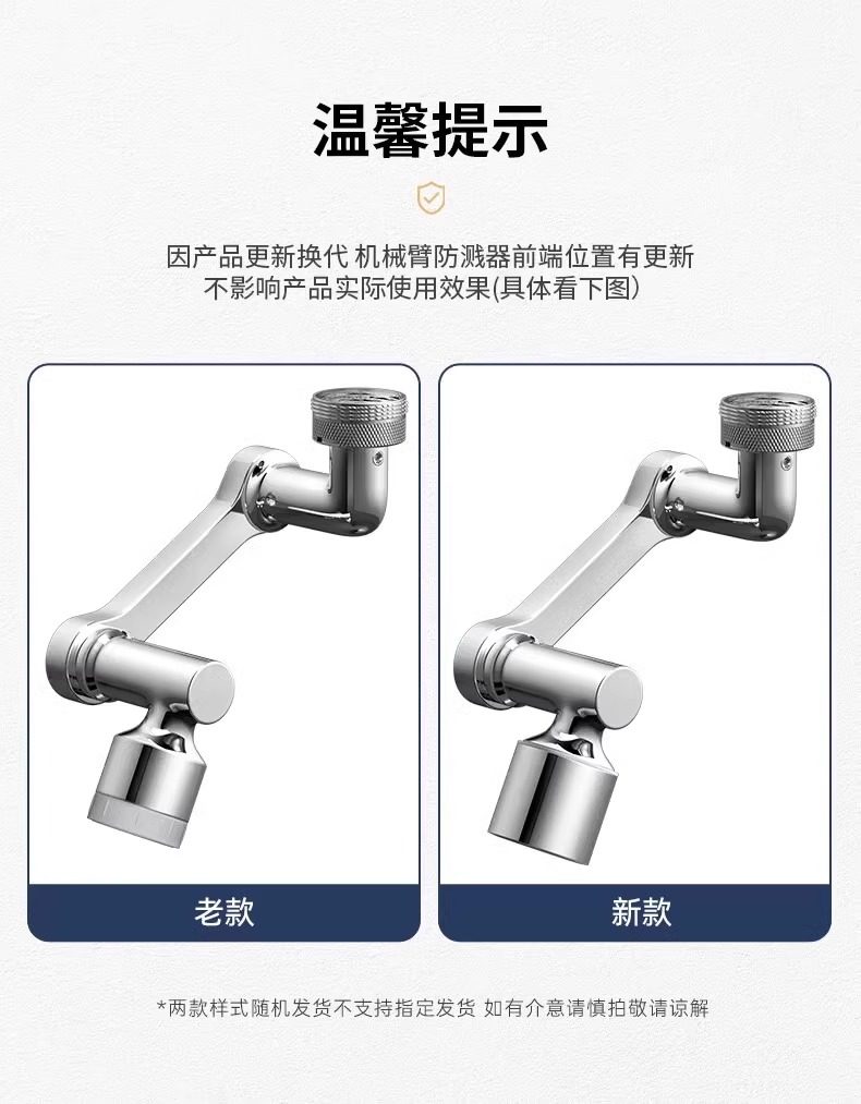 Mechanical Arm Universal Faucet with Rotatable Spout, Extendable Basin Aerator Connector, Anti-Splash Device, Swing Arm