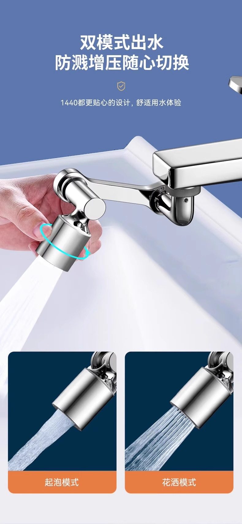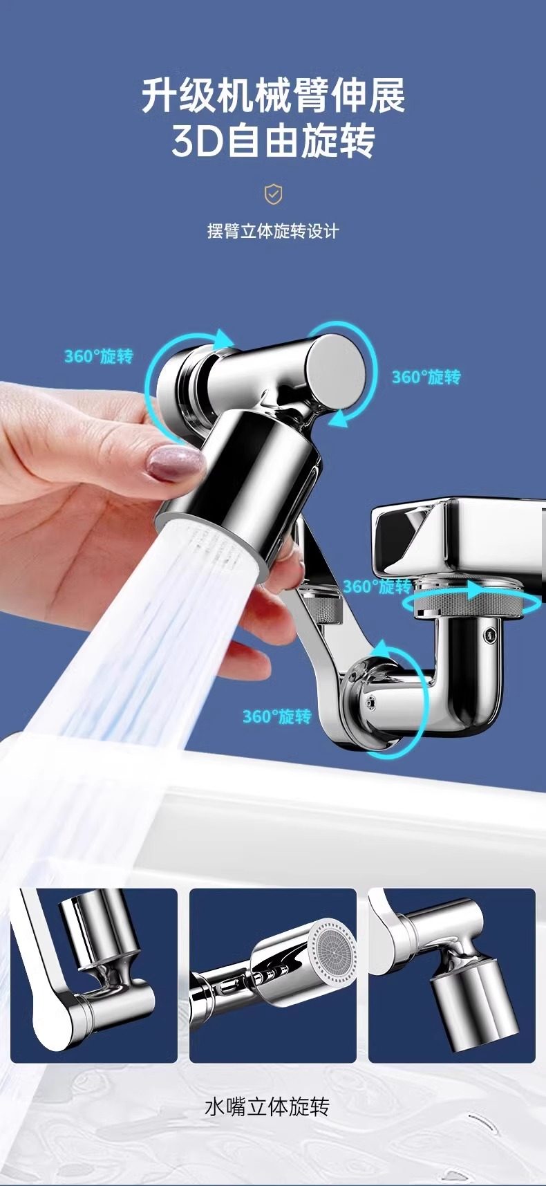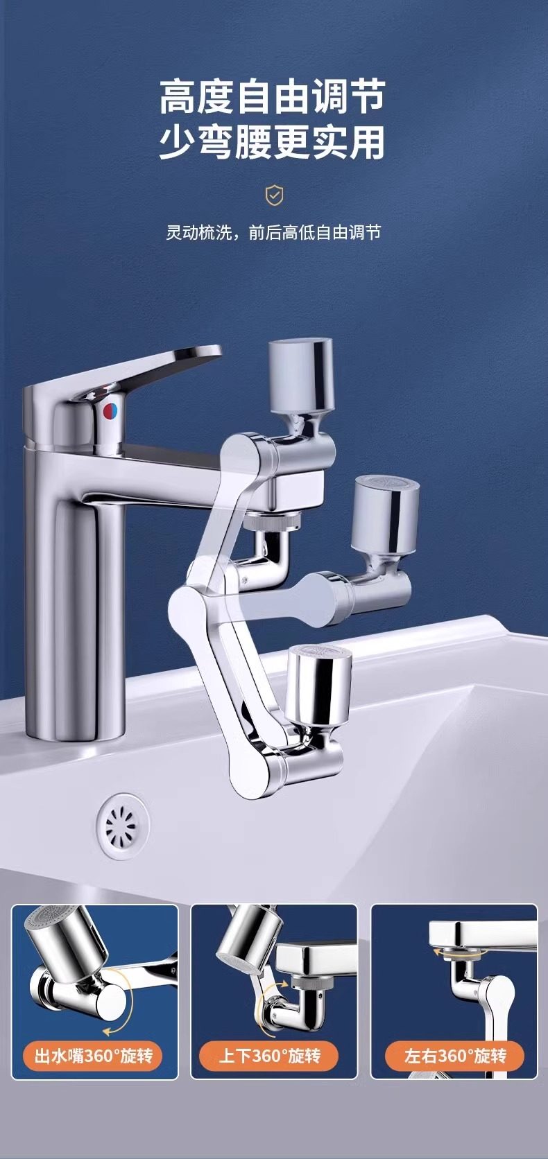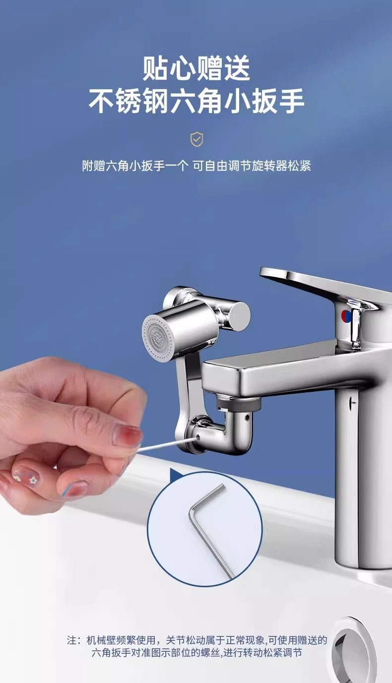 Mechanical Arm Universal Faucet with Rotatable Spout, Extendable Basin Aerator Connector, Anti-Splash Device, Swing Arm