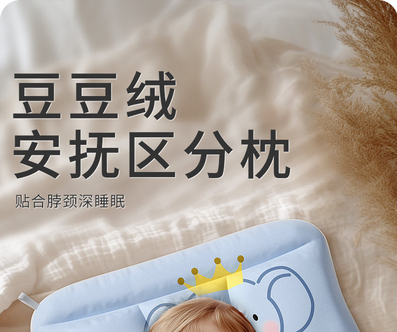 Zedbed Kidsren's Pillow Soothing Bean Velvet Pillow Sweat-Absorbent Four-Season Shaped Pillow for 1-3-6-12-Year-Old Infants and Kindergarten