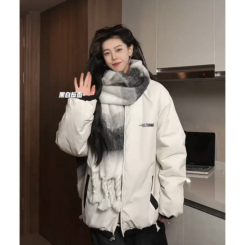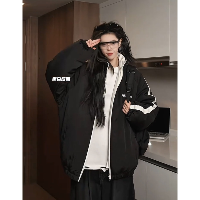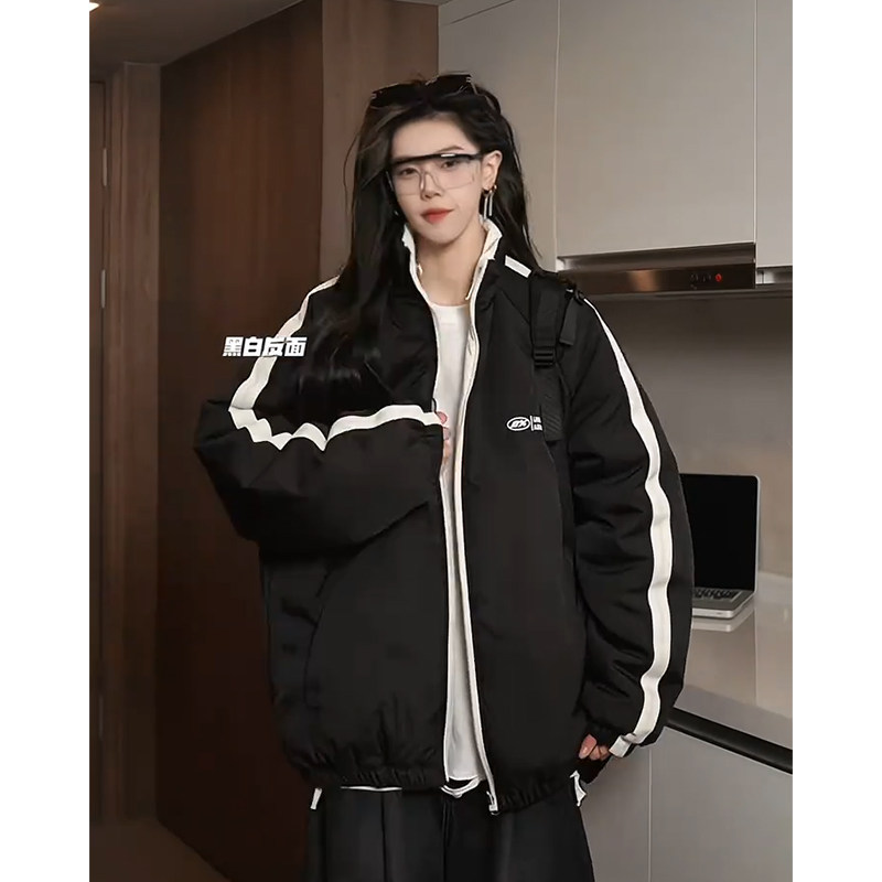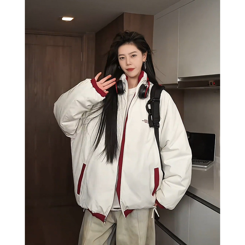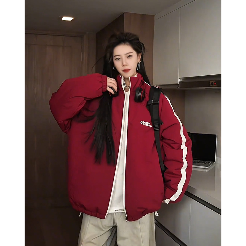 Christmas Red Reversible down Jacket for Men, Winter American High Street Style, Stand Collar, Double-Sided Cotton Coat, Couple's Jacket