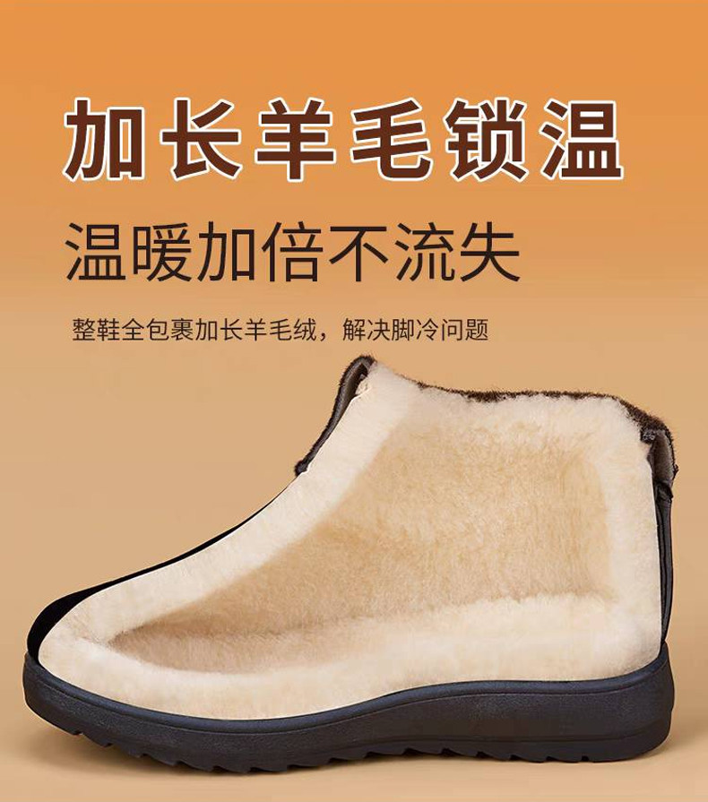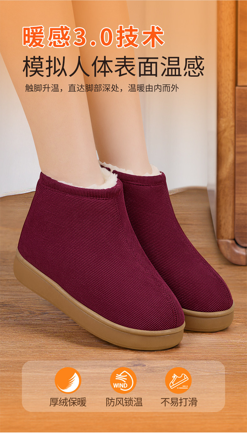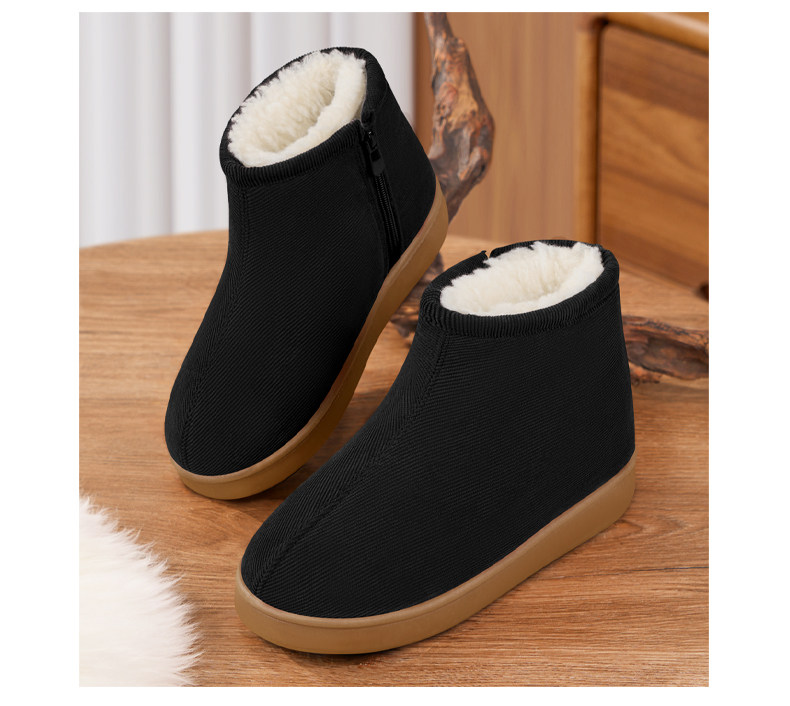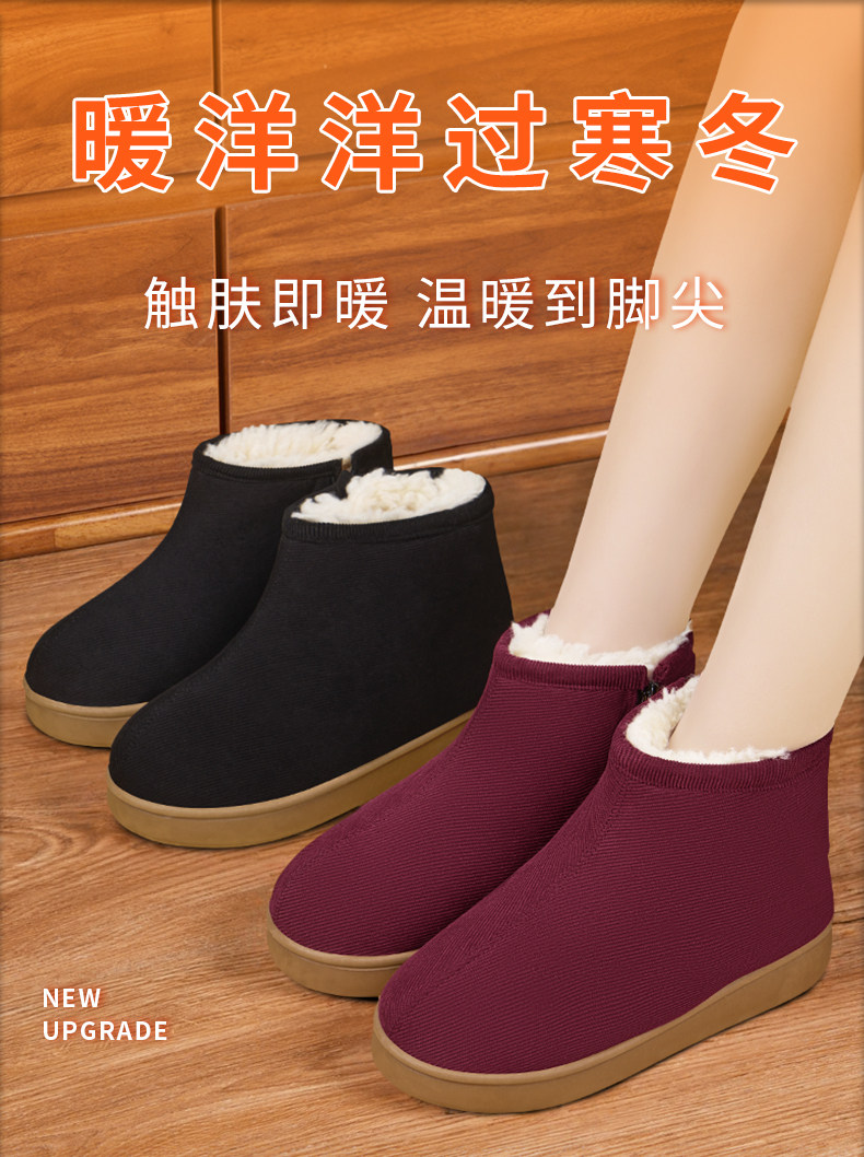 Women's Winter Cotton Shoes with Fleece Lining, Thickened Wool, Closed-Back Cotton Slippers, Non-Slip, Warm Shoes for Elderly Women and Men