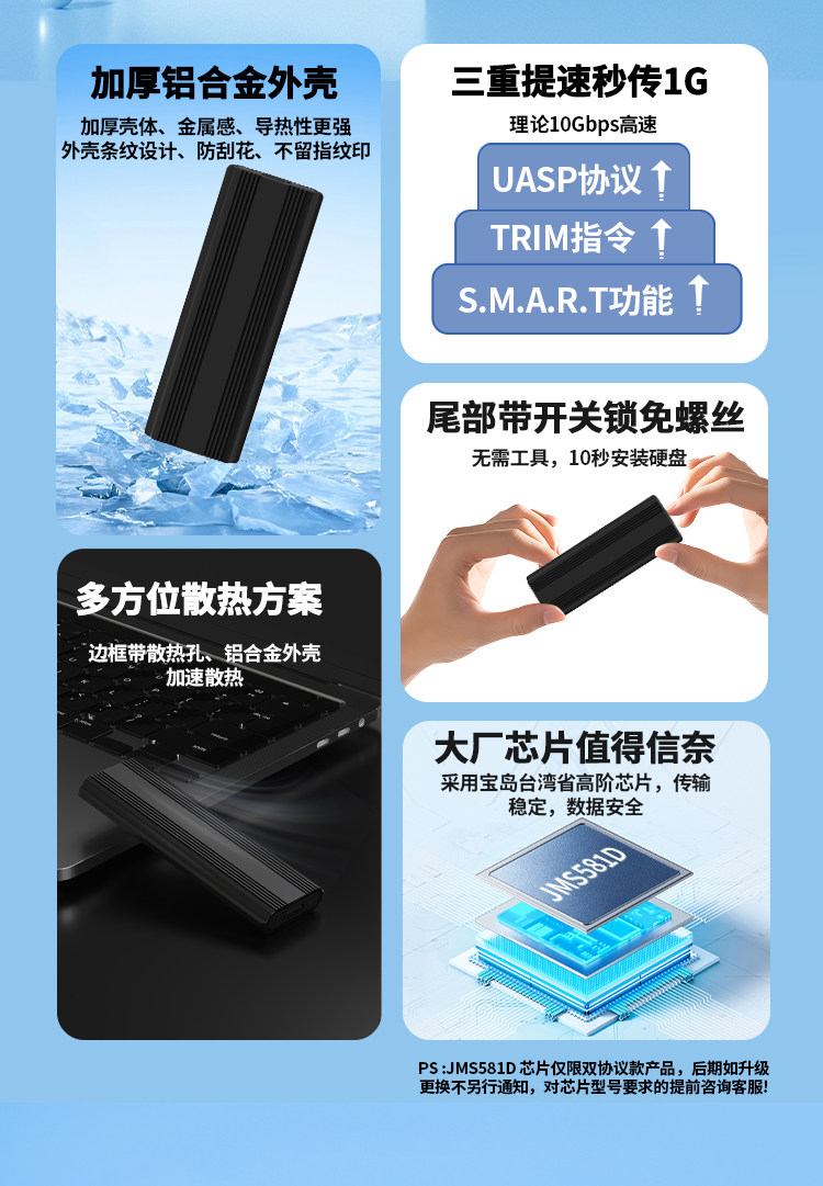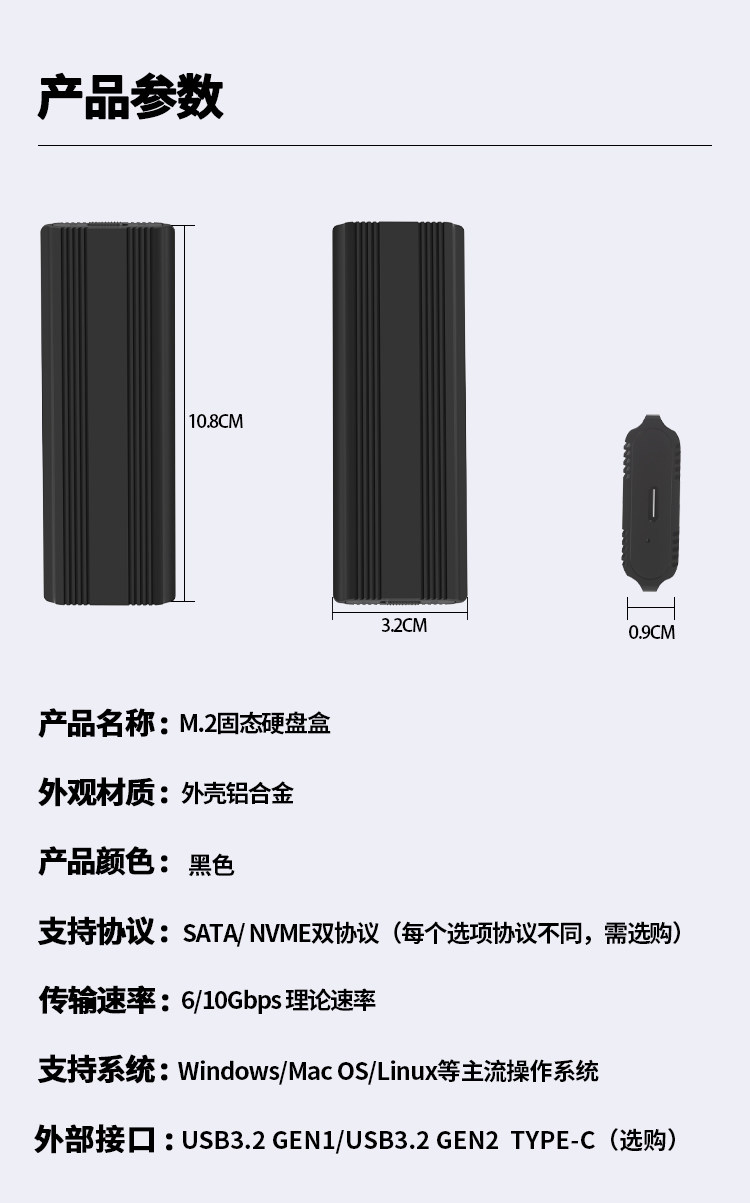 | Color Classification | [Sata/Nvme Dual Protocol]6/10Gbps Frosted Striped Black[Screwless Switch Lock]*With Type-C/A Double-Ended Cable,[Sata/Nvme Dual Protocol]6/10Gbps Matte Glossy Black[Screwless Switch Lock]*With Type-C/A Double-Ended Cable,[Sata/Nvme Dual Protocol]6/10Gbps Matte Square Black[Screwless Switch Lock]*With Type-C/A Double-Ended Cable,Suitable for 1 Notch Solid State[Nvme Protocol]10Gbps Frosted Striped Black[Screwless Switch Lock]*With Type-C Cable,Suitable for 1 Notch Solid State[Nvme Protocol]10Gbps Matte Glossy Black[Screwless Switch Lock]*With Type-C Cable,Suitable for 1 Notch Solid State[Nvme Protocol]10Gbps Matte Square Black[Screwless Switch Lock]*With Type-C Cable,Suitable for 2-Notch Solid State[Sata Protocol]5Gbps Frosted Striped Black[Screwless Switch Lock]*With Type-C Cable,Suitable for 2-Notch Solid State[Sata Protocol]5Gbps Matte Glossy Black[Screwless Switch Lock]*With Type-C Cable,Suitable for 2-Notch Solid State[Sata Protocol]5Gbps Matte Square Black[Screwless Switch Lock]*With Type-C Cable |
