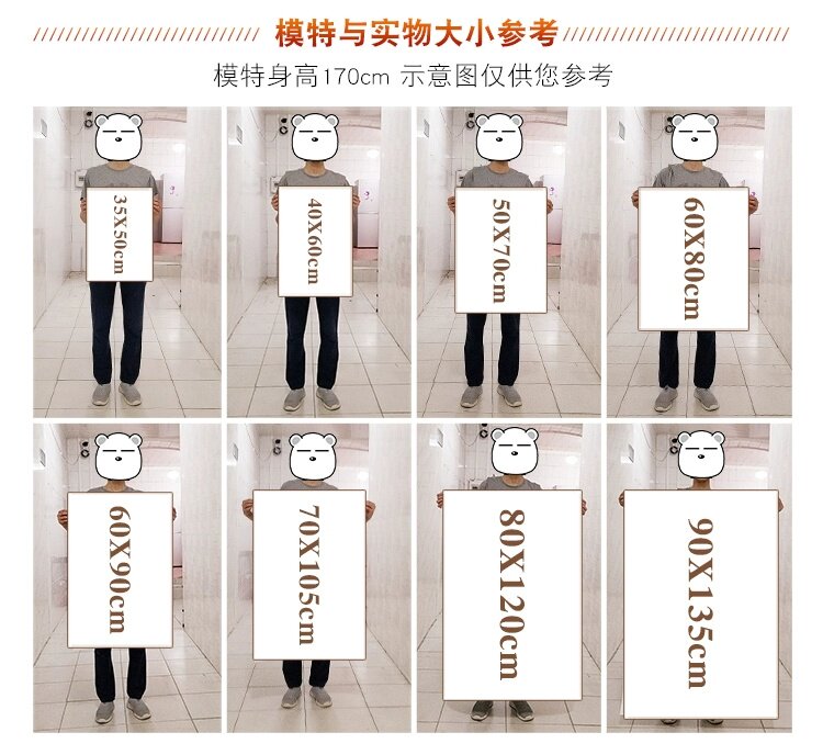 | Size | 40X 60cm <Regular Size>,50X 70cm <Regular Size>,60X 80cm <Hot Selling Size>,60X 90cm <Hot Selling Size>,70X 105cm Eye-Catching and Atmospheric> |