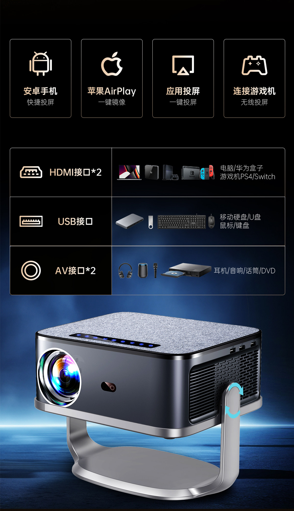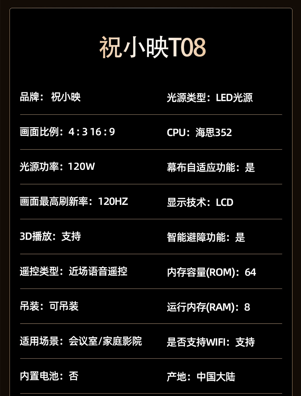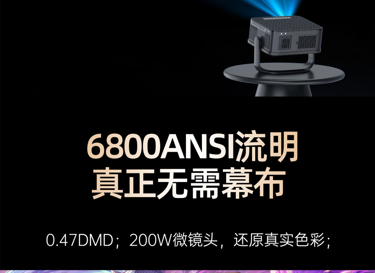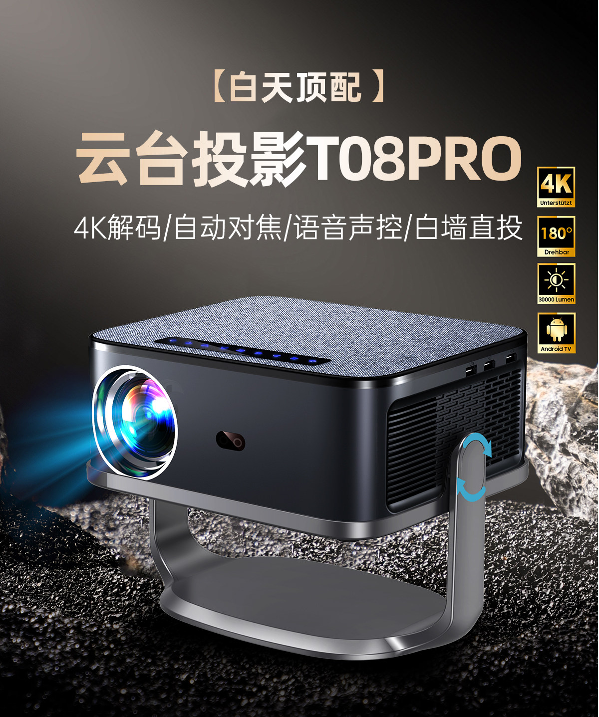 New T08Pro Projector Home Ultra-High Definition Home Theater High Lumens Daytime Strong Light Direct Projection Office Meeting Training Dedicated Commercial Hotel B&B High-Definition Projector Big Brand 3D
