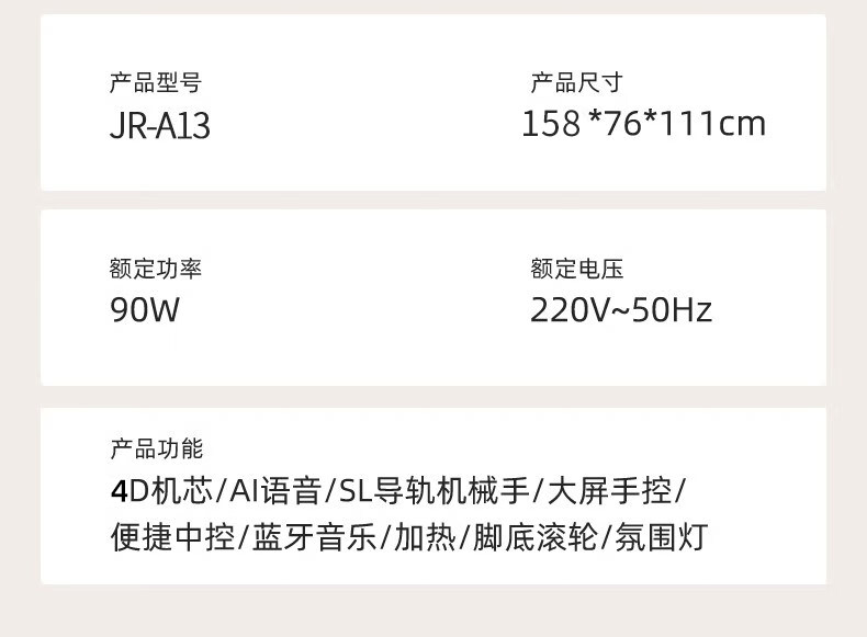 | Function | Massage Point Adjustment,Airbag Strength Adjustment,Local Heat Therapy,Massage Intensity Adjustment,Bluetooth Connection,Roller Speed Adjustment |