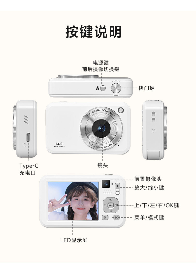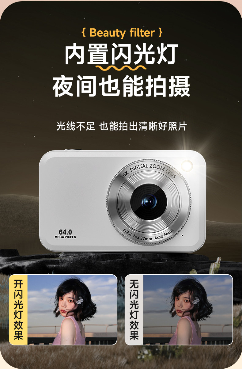 | Color Classification | Classic Style-White[64 Million Pixels + 4K Hd Recording + Intelligent Af Focus + 16X Zoom + Digital Image Stabilization + 20 Filters],Classic Style-Black[64 Million Pixels + 4K Hd Recording + Intelligent Af Focus + 16X Zoom + Digital Image Stabilization + 20 Filters],Classic-Purple[64 Million Pixels + 4K Hd Recording + Intelligent Af Focus + 16X Zoom + Digital Image Stabilization + 20 Filters],Upgraded Model-White[64 Million Pixels + Front and Rear Dual Cameras/Selfie + Intelligent Af Focus + 16X Zoom + Digital Image Stabilization + 20 Filters]+Dual Battery,Upgraded Model-Black[64 Million Pixels + Front and Rear Dual Cameras/Selfie + Intelligent Af Focus + 16X Zoom + Digital Image Stabilization + 20 Filters]+Dual Battery,Upgraded Model-Pink[64 Million Pixels + Front and Rear Dual Cameras/Selfie + Intelligent Af Focus + 16X Zoom + Digital Image Stabilization + 20 Filters]+Dual Battery,[Package Description]Standard Configuration Does Not Include a Memory Card; You'Ll Need to Purchase One Separately |