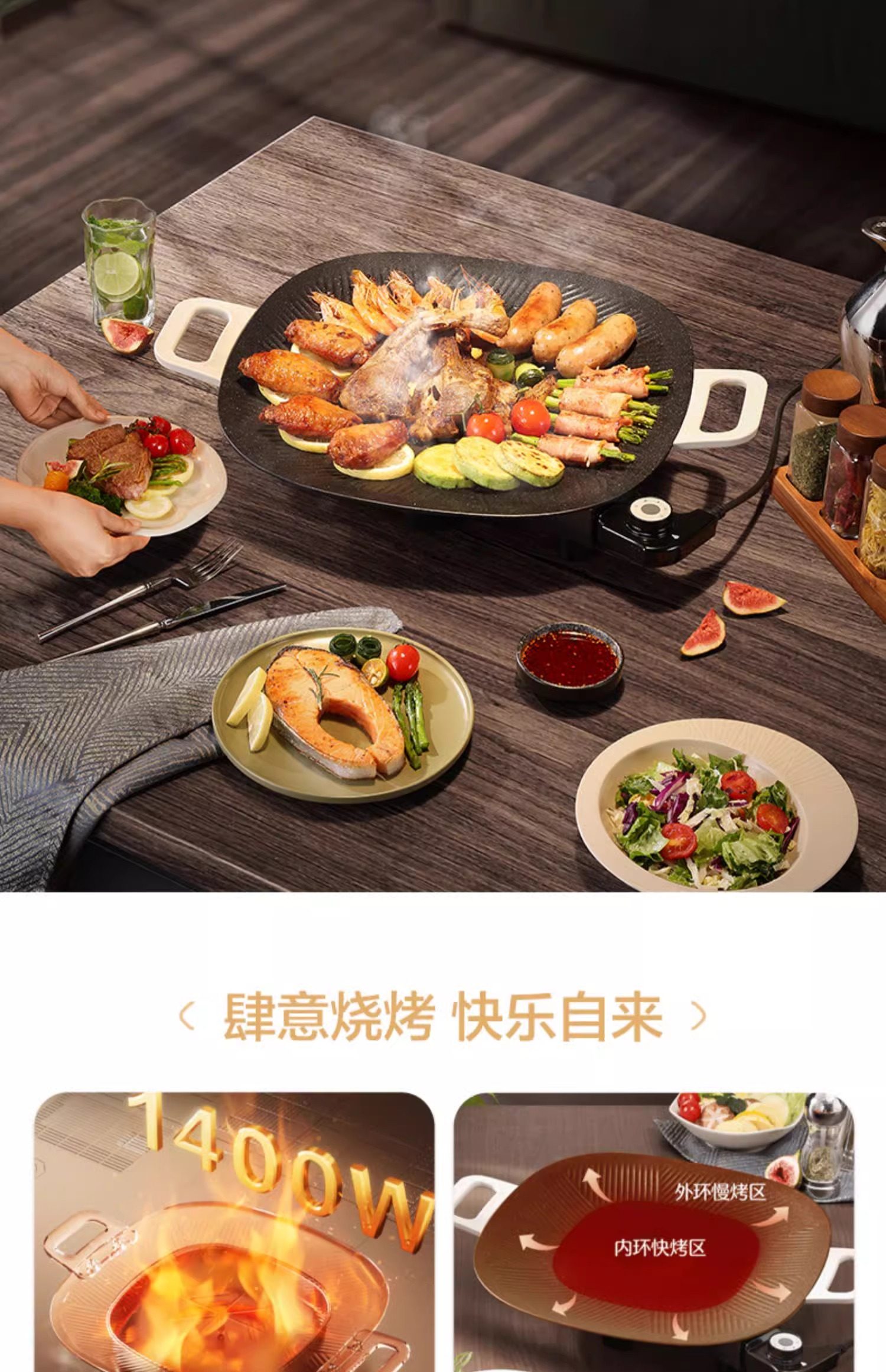 Supor Electric Grill Pan for Home Use, Smokeless Non-Stick Pan, Korean-Style Multifunctional Grill and Hot Pot All-In-One Cooking Machine