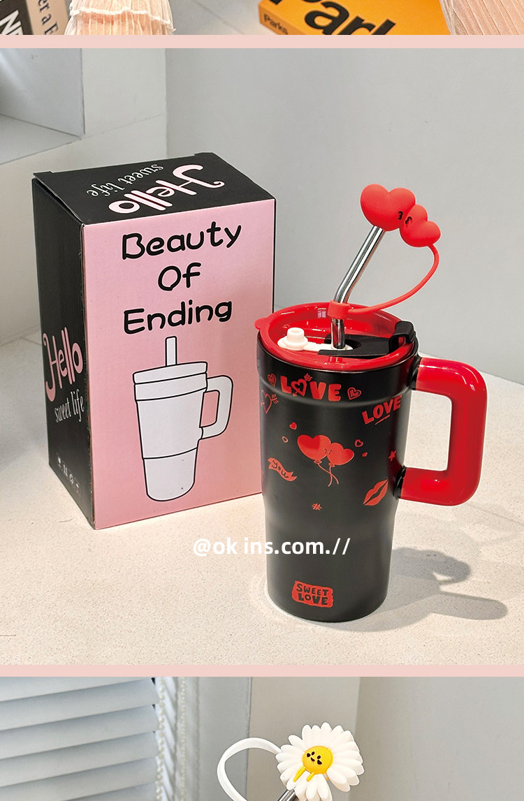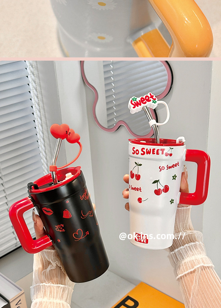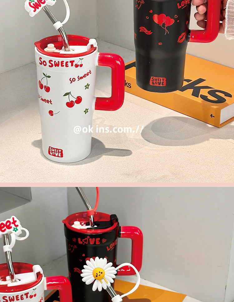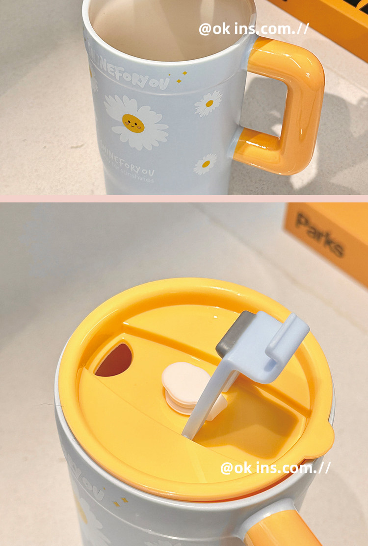 Giant Large-Capacity Dopamine Straw Cup with Handle, New Ceramic Ice Cup, High-Value Double-Drink Cup for Girls