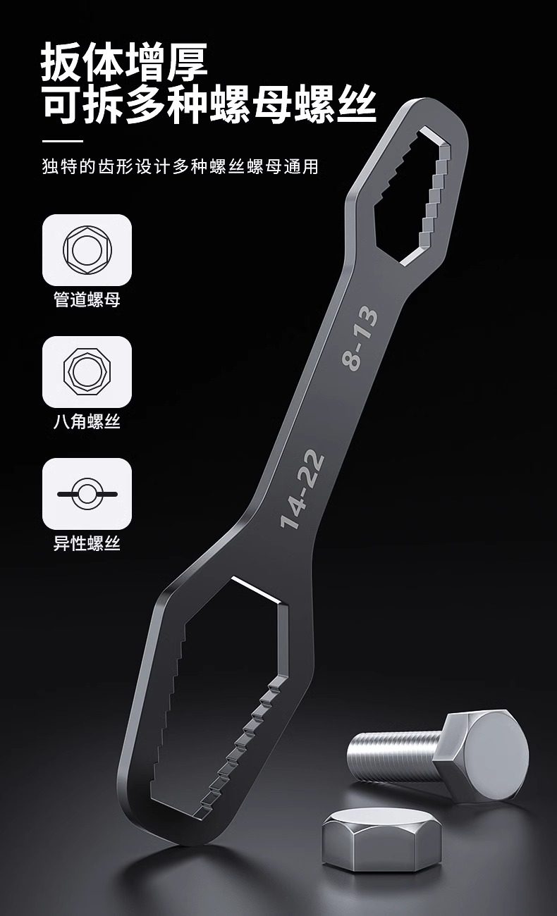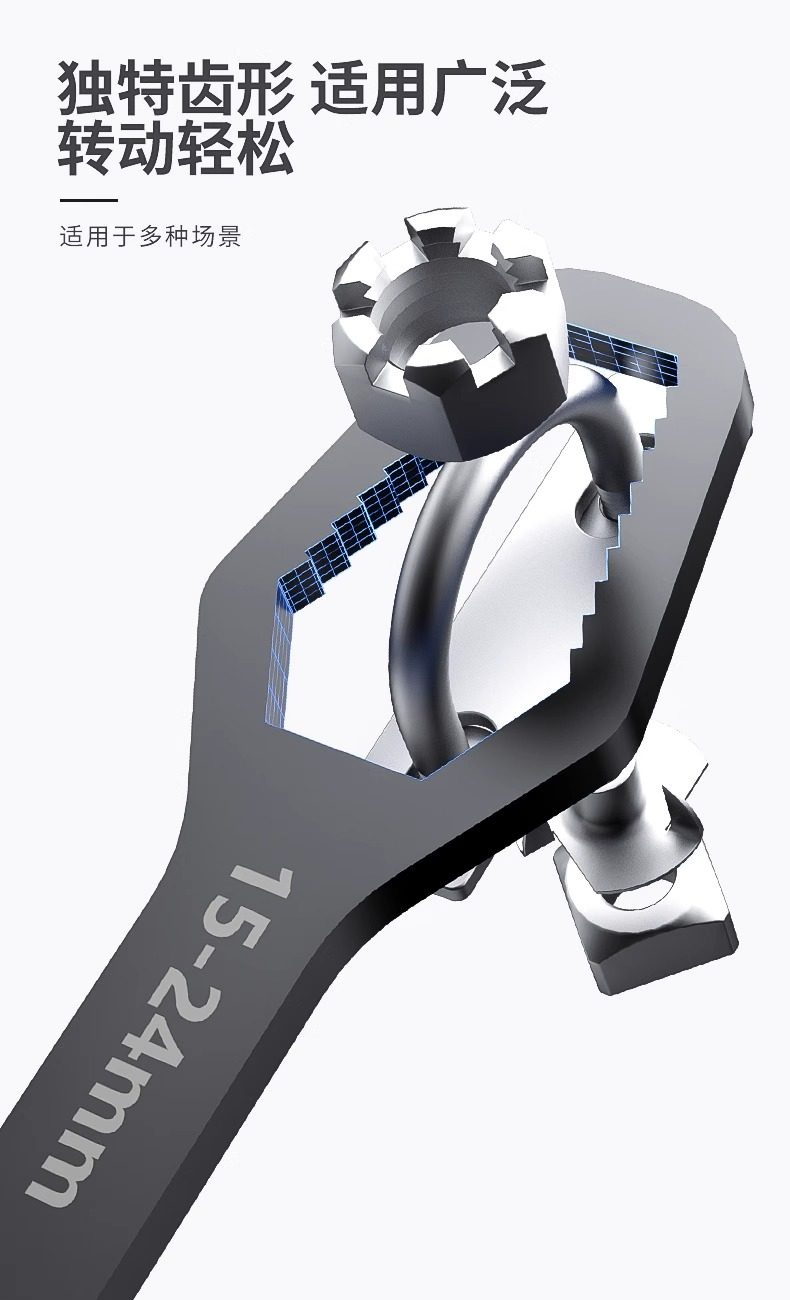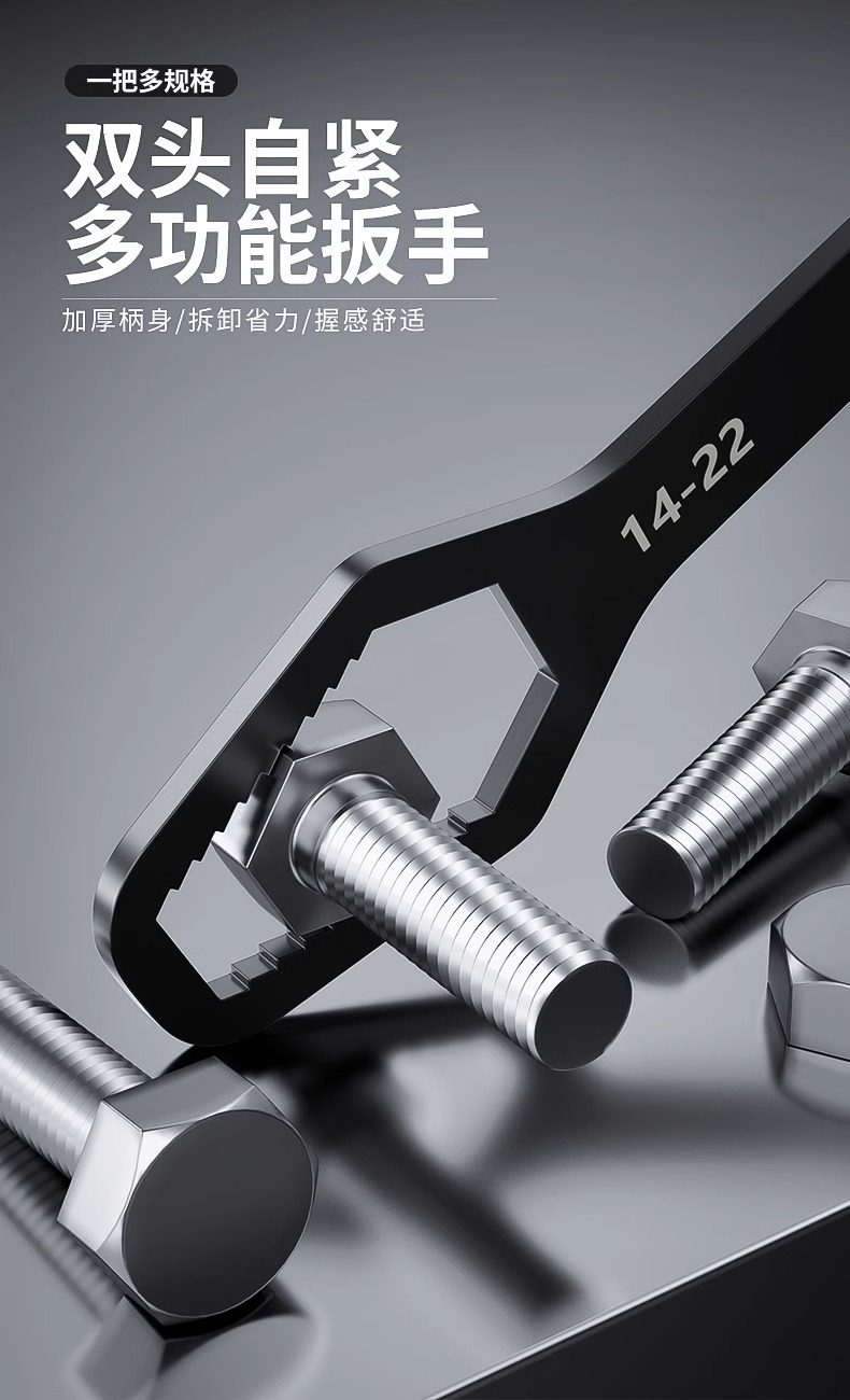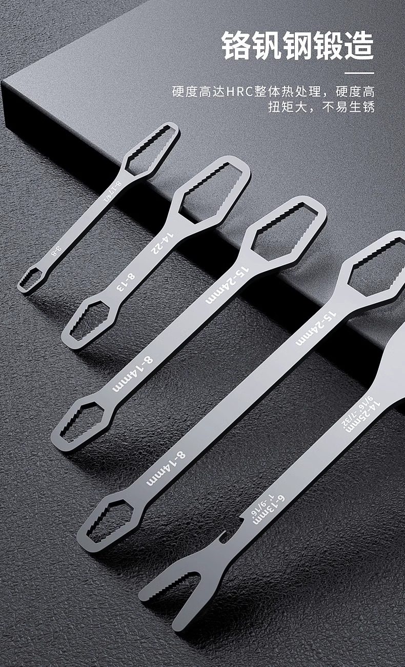 Multi-Functional Plum Wrench, Multi-Purpose Double-Headed Self-Tightening Wrench, 8-22mm Set of Tools