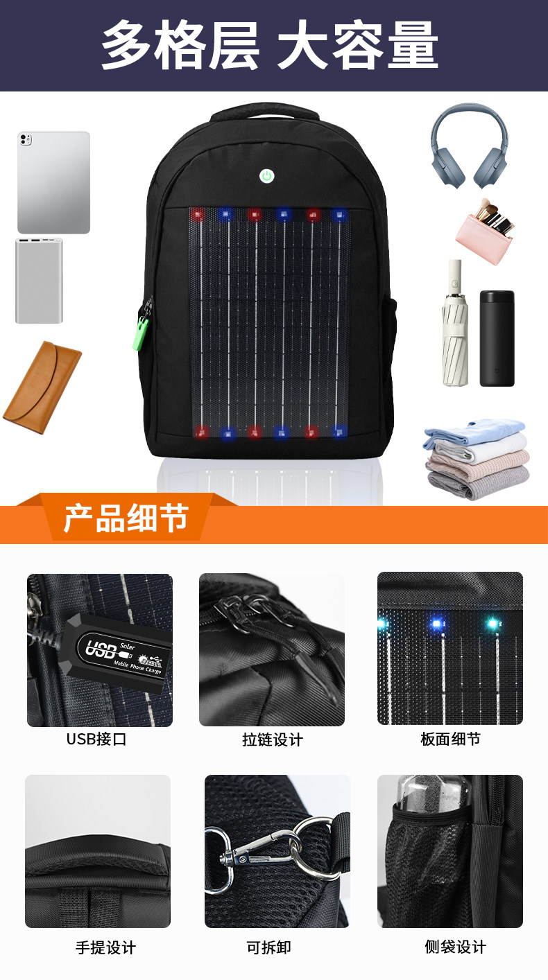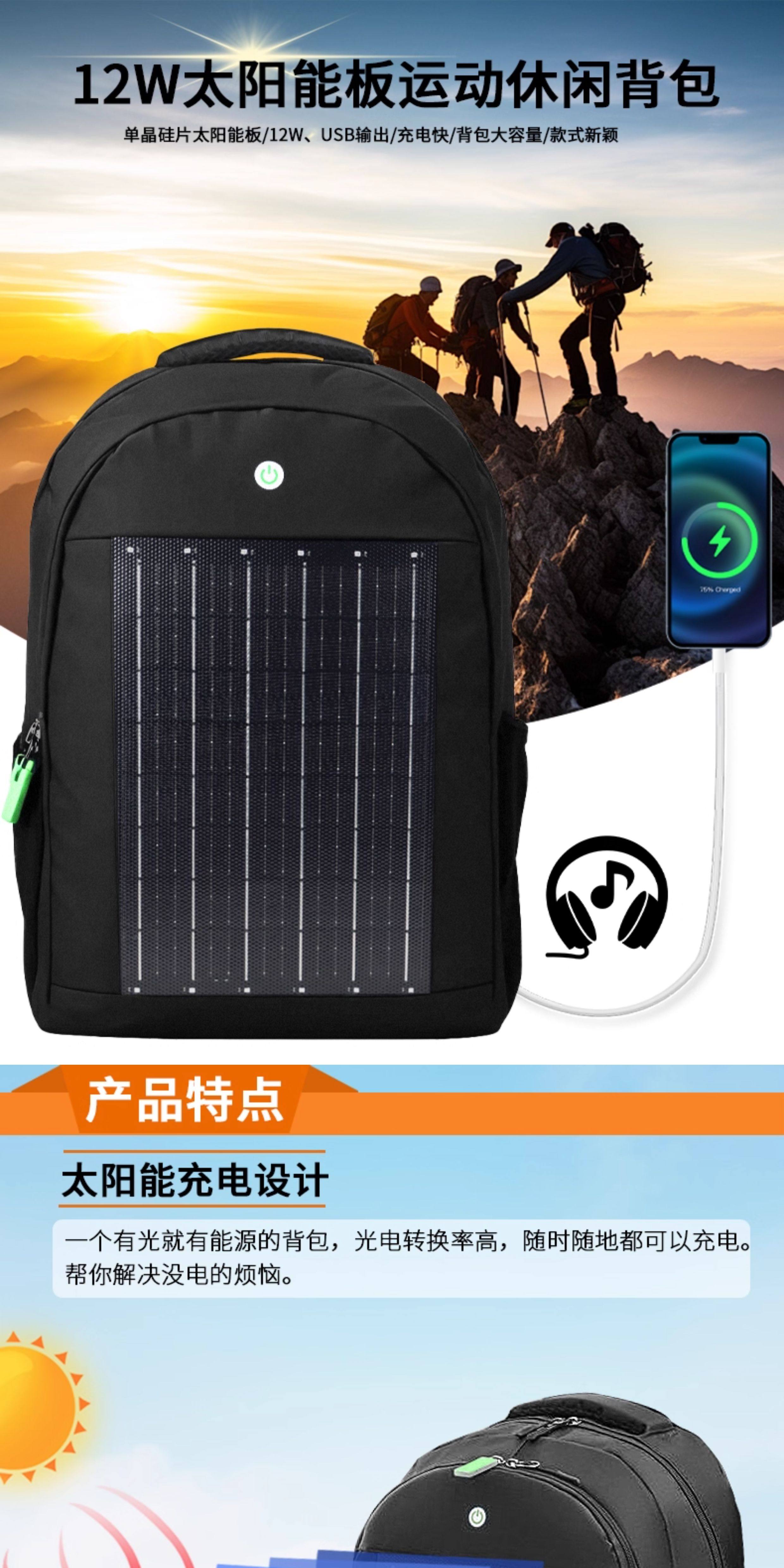 2025 Model Backpack Solar Charging Travel Bag Large Capacity Outdoor Sports Hiking Backpack Multifunctional School Bag