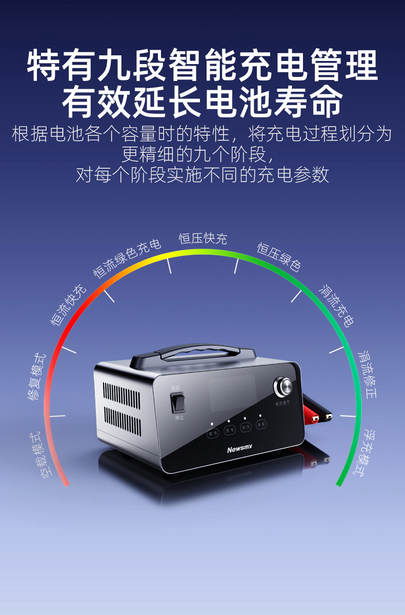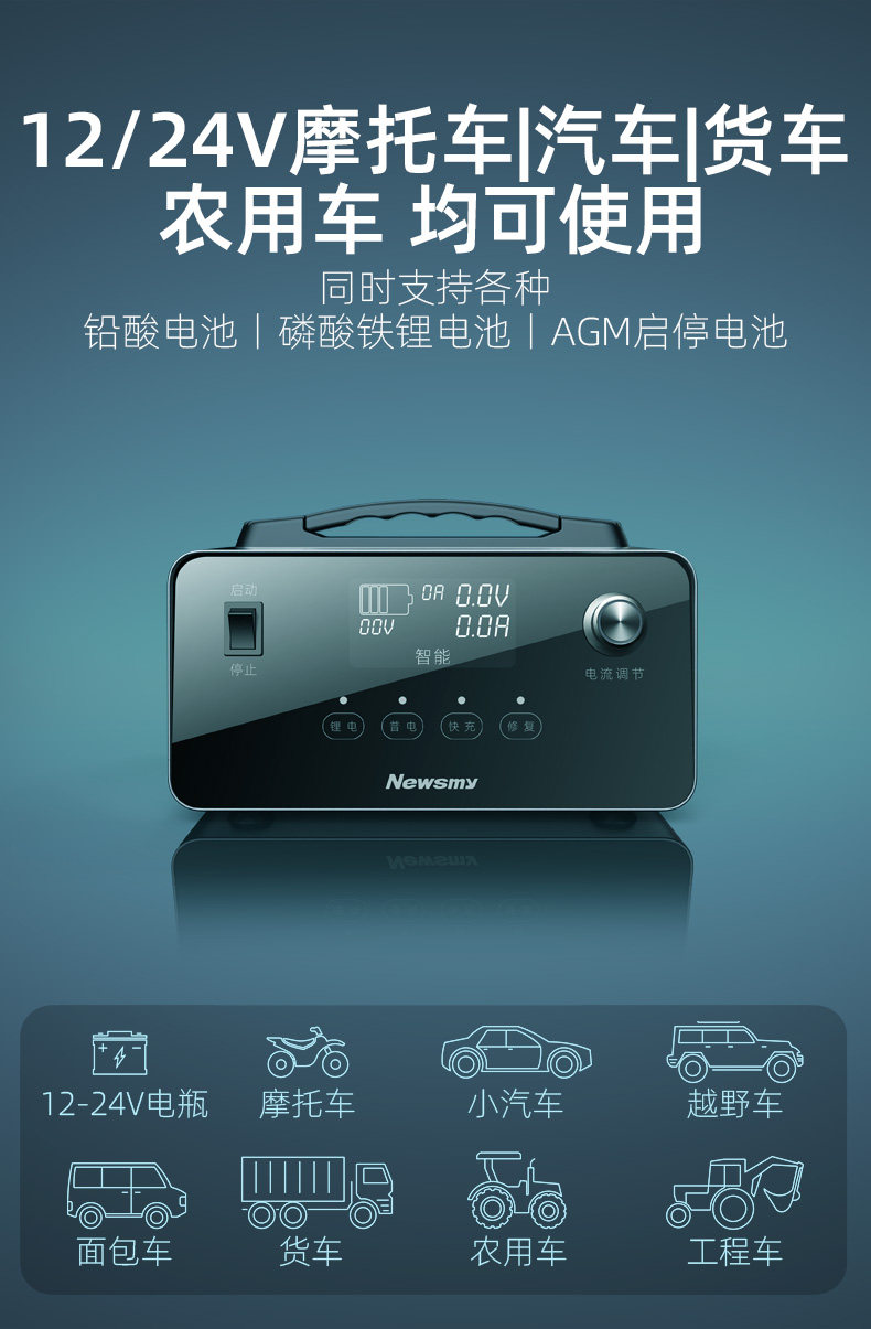 [Auto Repair Grade] Newman Car Battery Charger 12V24V Intelligent Pulse Repair for Motorcycle Start-Stop Batteries