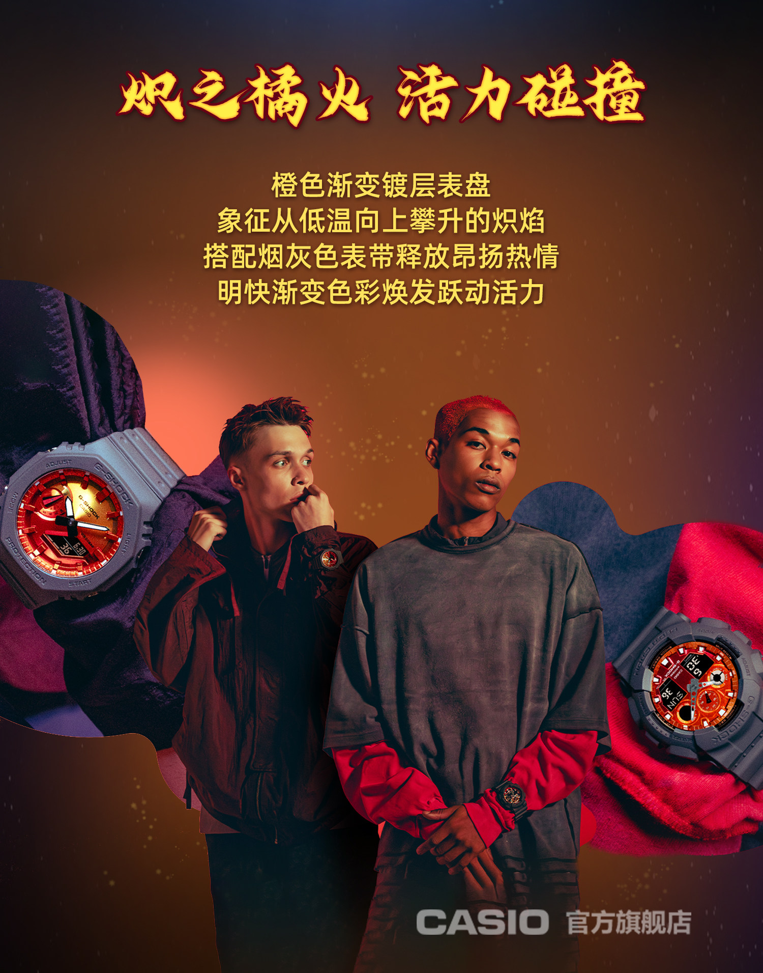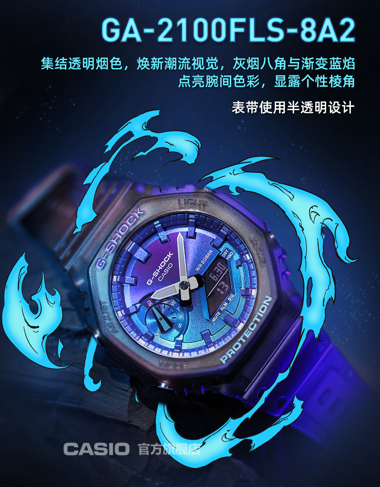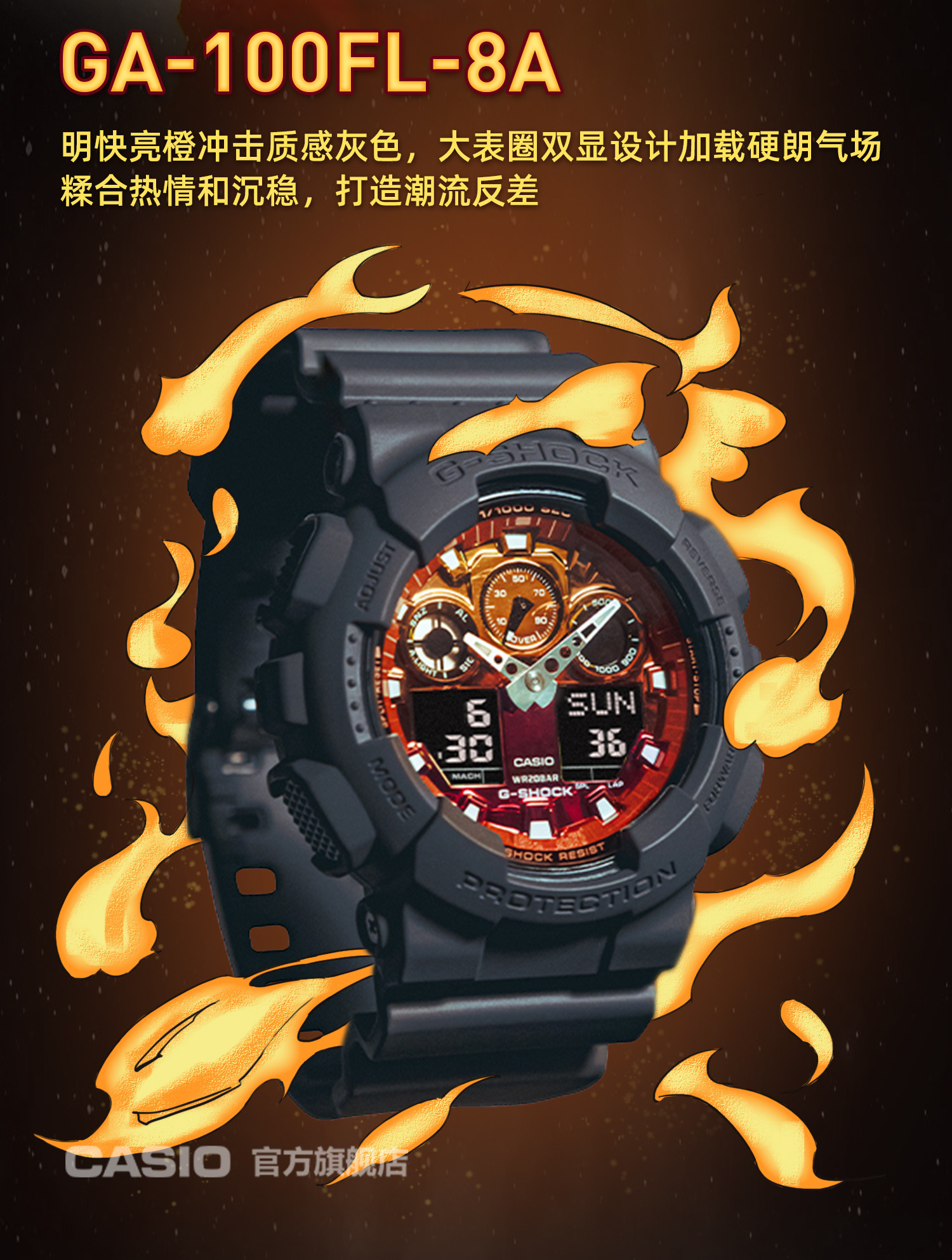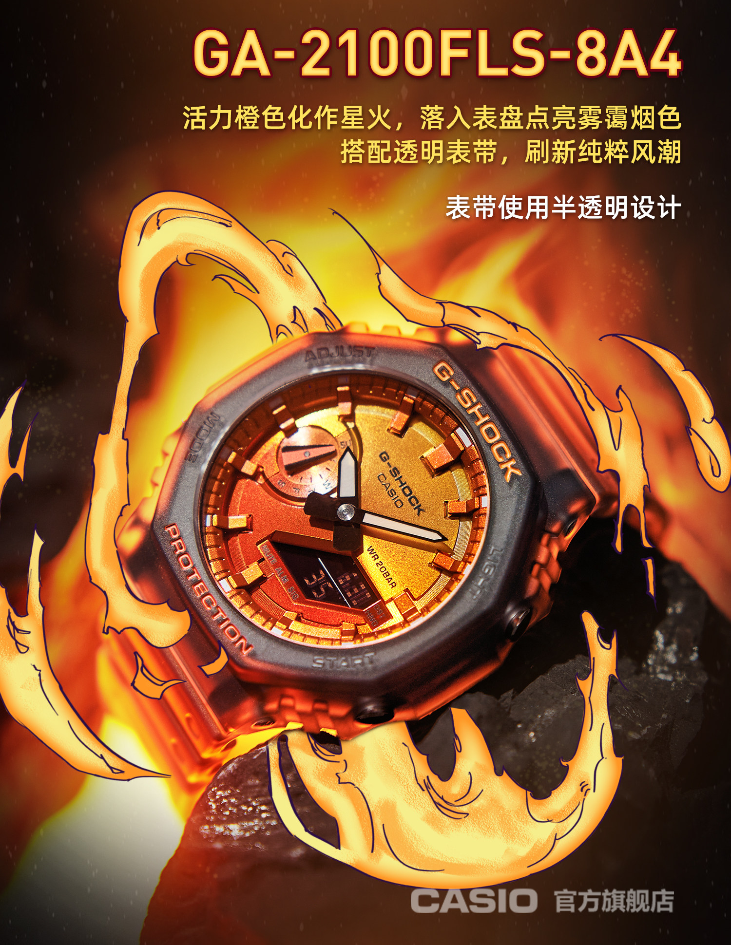 Casio Official Flagship Store Flame Inside Trendy Sports Shock-Resistant Colorful Dial Watch G-Shock