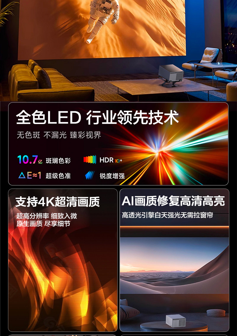 Daytime Direct Projection 2025 New Model Big Brand Projector Home Ultra-High-Definition Laser Tv Office Conference Computer Hotel All-In-One Projection Bedroom 4K Decoding Living Room Home Theater Mobile Screen Projection
