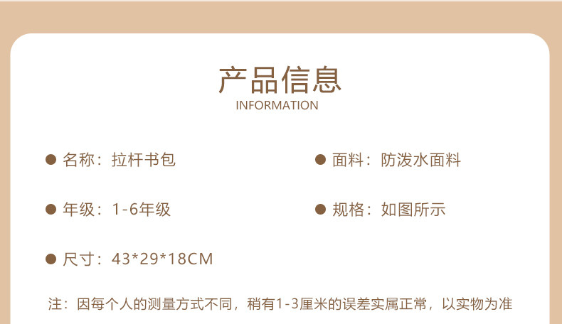| Color Classification | Royal Blue + Separate School Bag - No Trolley,Royal Blue School Bag + Two-Wheel Trolley,Royal Blue School Bag + Six-Wheel Trolley,Royal Blue Backpack + High-Leg Six-Wheel Trolley,Royal Blue School Bag + Upgraded Large Two-Wheel Trolley,Powder Blue Backpack + Separate Backpack - No Trolley,Pink and Blue School Bag + Two-Wheel Trolley,Pink and Blue School Bag + Six-Wheel Trolley,Pink and Blue School Bag + Tall Six-Wheel Trolley,Pink and Blue School Bag + Upgraded Large Two-Wheel Trolley,Green + Separate School Bag - No Pull Rod,Green School Bag + Two-Wheel Trolley,Green School Bag + Six-Wheel Trolley,Green Backpack + High-Leg Six-Wheel Trolley,Green Backpack + Upgraded Large Two-Wheel Trolley,Pink + Separate School Bag - No Trolley,Pink School Bag + Two-Wheel Trolley,Pink School Bag + Six-Wheel Trolley,Pink School Bag + Tall Six-Wheel Trolley,Pink School Bag + Upgraded Large Two-Wheel Trolley,Brown + Separate School Bag - No Trolley,Brown School Bag + Two-Wheel Trolley,Brown School Bag + Six-Wheel Trolley,Brown Backpack + High-Leg Six-Wheel Trolley,Brown School Bag + Upgraded Large Two-Wheel Trolley,Purple + Separate School Bag - No Pull Rod,Purple School Bag + Two-Wheel Trolley,Purple School Bag + Six-Wheel Trolley,Purple School Bag + Tall Six-Wheel Trolley,Purple School Bag + Upgraded Large Two-Wheel Trolley,Black + Separate School Bag - No Trolley,Black Backpack + Two-Wheel Trolley,Black Backpack + Six-Wheel Trolley,Black Backpack + High-Leg Six-Wheel Trolley,Black Backpack + Upgraded Large Two-Wheel Trolley,Red + Separate School Bag - No Trolley,Red Backpack + Two-Wheel Trolley,Red Backpack + Six-Wheel Trolley,Red Backpack + High-Leg Six-Wheel Trolley,Red Backpack + Upgraded Large Two-Wheel Trolley |