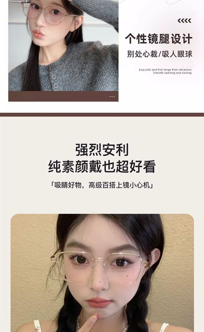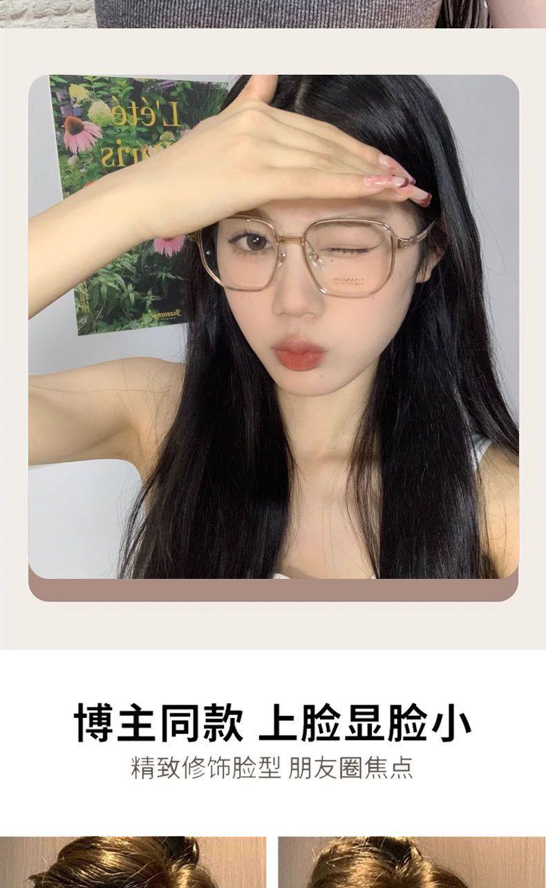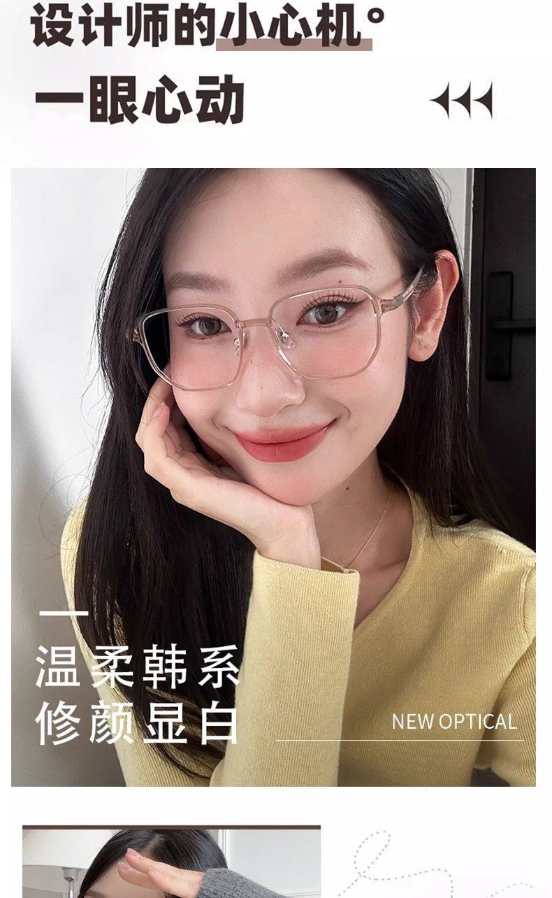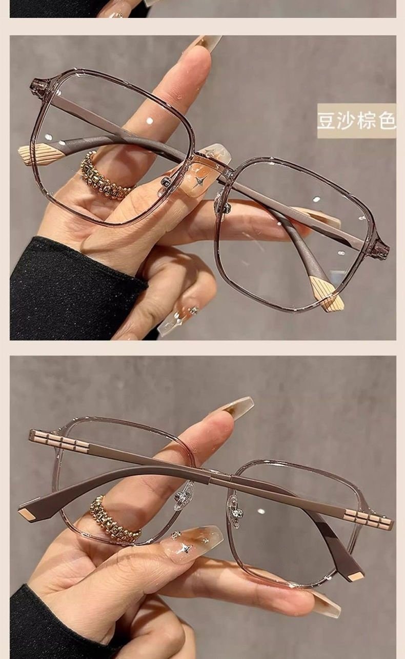 Ultra-Light Polygonal Transparent Gray Glasses for Nearsighted Women, Customizable Prescription, Large Frame, Natural Look, Stylish, Blue Light Blocking Frame