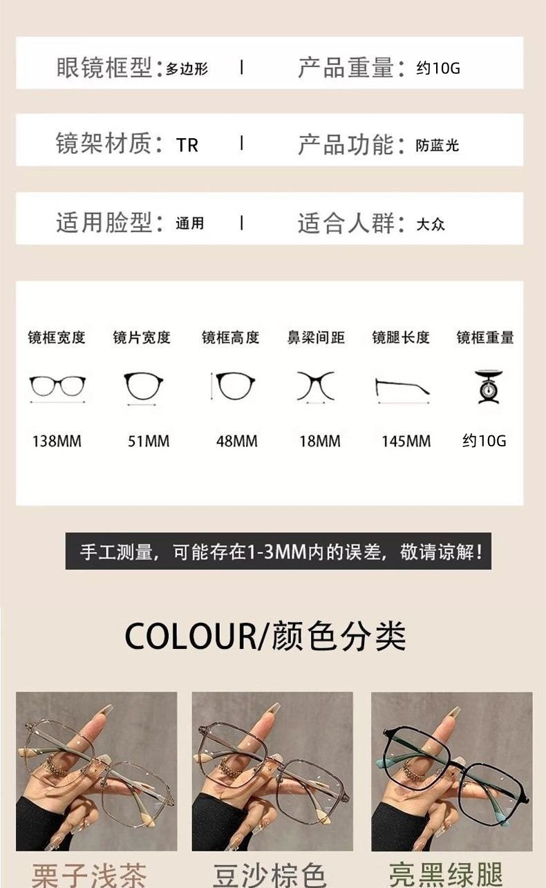 | Lens Refractive Index | 0 Degree Anti-Blue Light Flat Mirror [Single Glasses],0 Degree Anti-Blue Light Flat Mirror [Mirror Box and Lens Cloth],Anti-Blue Light Myopia 50 Degrees [Free Mirror Box and Lens Cloth],Anti-Blue Light Myopia 75 Degrees [Free Mirror Box and Lens Cloth],Anti-Blue Light Myopia 100 Degrees [Free Mirror Box and Lens Cloth],Anti-Blue Light Myopia 125 Degrees [Free Mirror Box and Lens Cloth],Anti-Blue Light Myopia 150 Degrees [Free Mirror Box and Lens Cloth],Anti-Blue Light Myopia 175 Degrees [Free Mirror Box and Lens Cloth],Anti-Blue Light Myopia 200 Degrees [Free Mirror Box and Lens Cloth],Anti-Blue Light Myopia 225 Degrees [Free Mirror Box and Lens Cloth],Anti-Blue Light Myopia 250 Degrees [Free Mirror Box and Lens Cloth],Anti-Blue Light Myopia 275 Degrees [Free Mirror Box and Lens Cloth],Anti-Blue Light Myopia 300 Degrees [Free Mirror Box and Lens Cloth],Anti-Blue Light Myopia 325 Degrees [Free Mirror Box and Lens Cloth],Anti-Blue Light Myopia 350 Degrees [Free Mirror Box and Lens Cloth],Anti-Blue Light Myopia 375 Degrees [Free Mirror Box and Lens Cloth],Anti-Blue Light Myopia 400 Degrees [Free Mirror Box and Lens Cloth],Anti-Blue Light Myopia 425 Degrees [Free Mirror Box and Lens Cloth],Anti-Blue Light Myopia 450 Degrees [Free Mirror Box and Lens Cloth],Anti-Blue Light Myopia 500 Degrees [Free Mirror Box and Lens Cloth],Anti-Blue Light Myopia 550 Degrees [Free Mirror Box and Lens Cloth],Anti-Blue Light Myopia 600 Degrees [Free Mirror Box and Lens Cloth],Note for Different Prescriptions for Both Eyes,Frame [Without Lenses] |