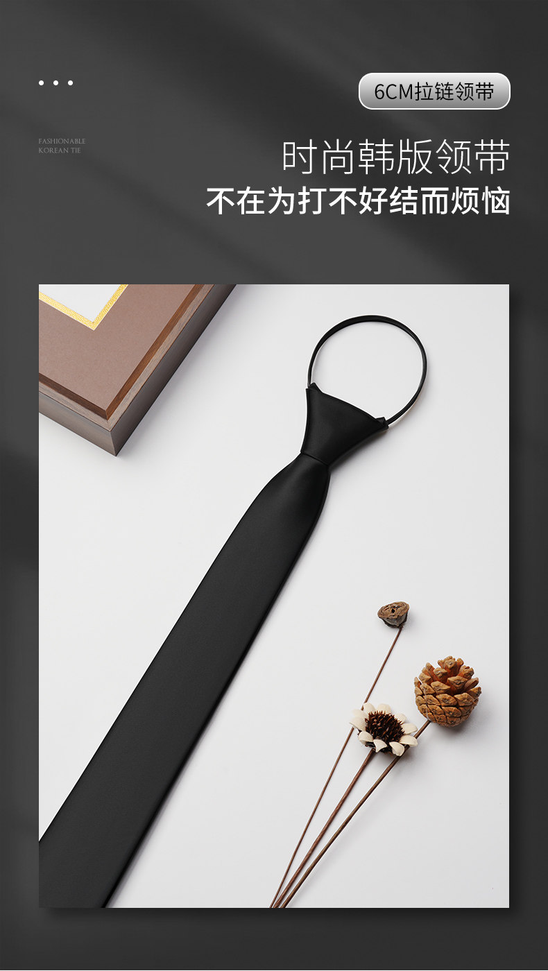 Men's Black Tie, Zipper Style, Korean Style Formal Business Narrow Tie, Lazy No-Knot Zipper Tie, Trendy