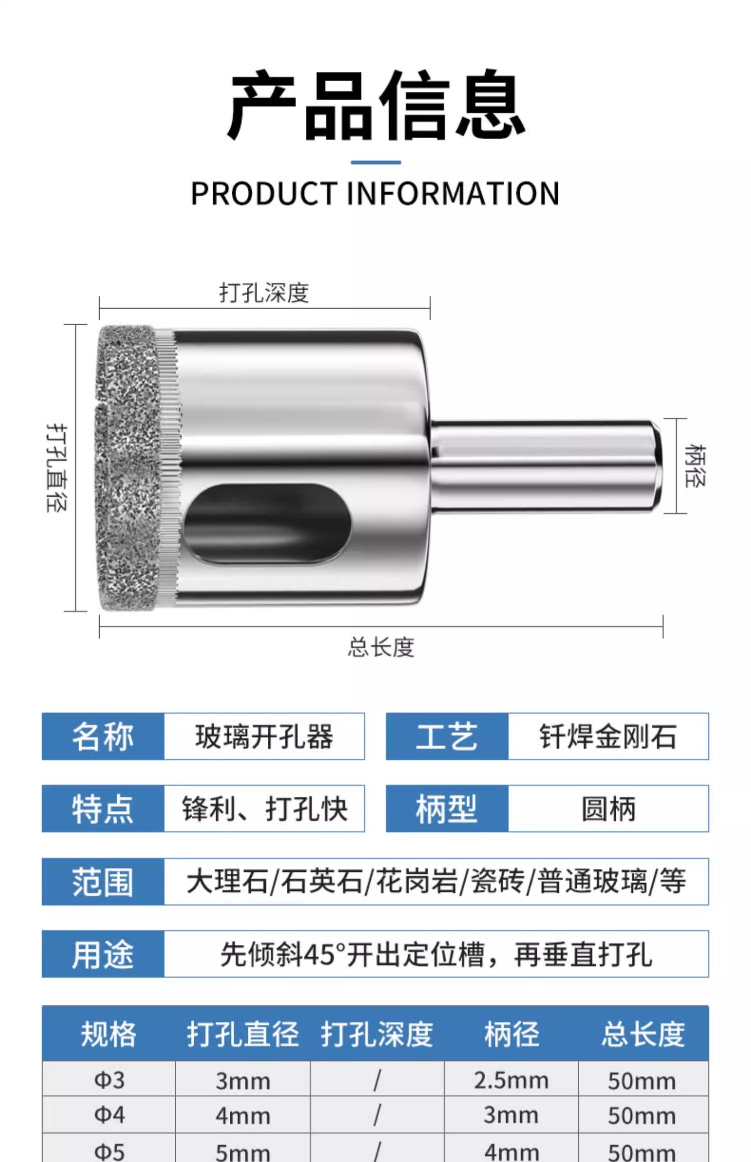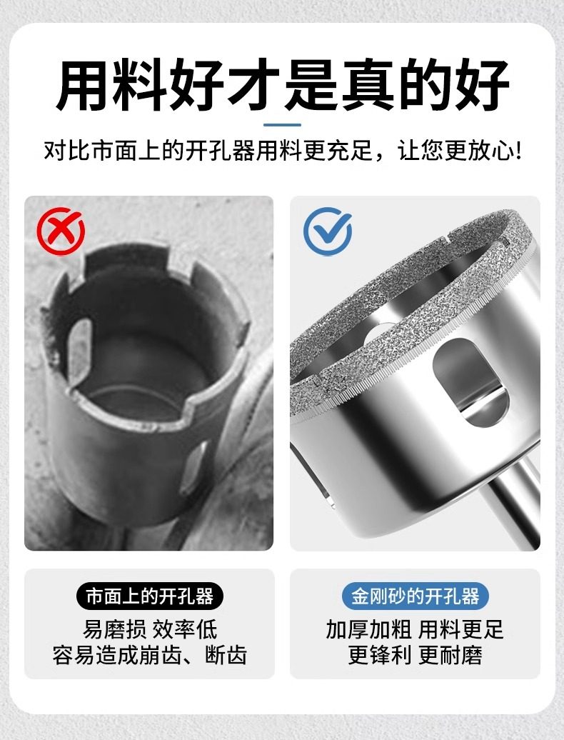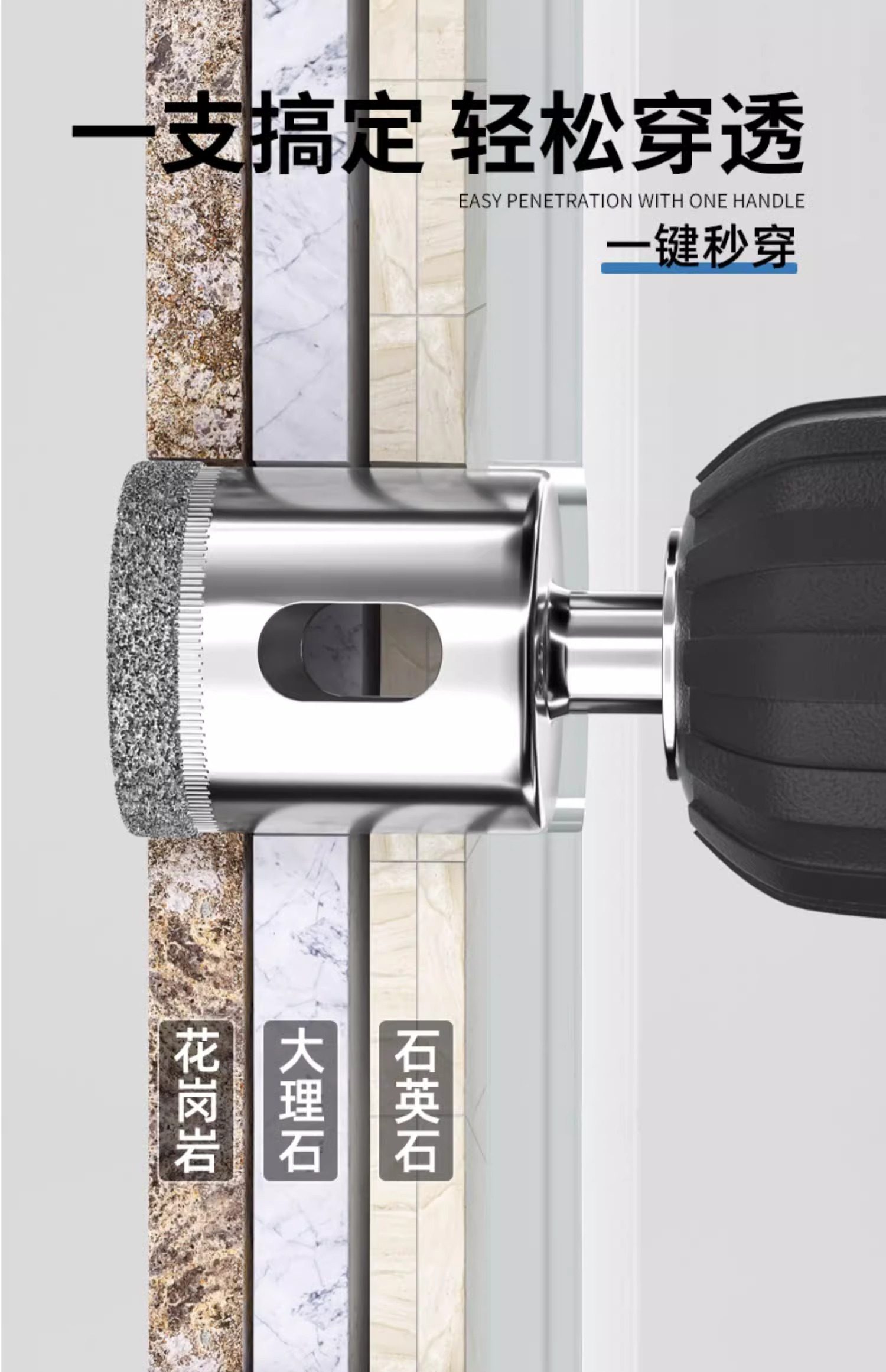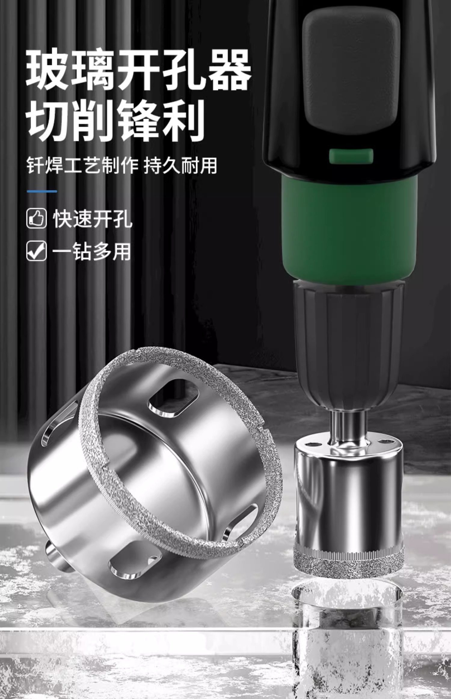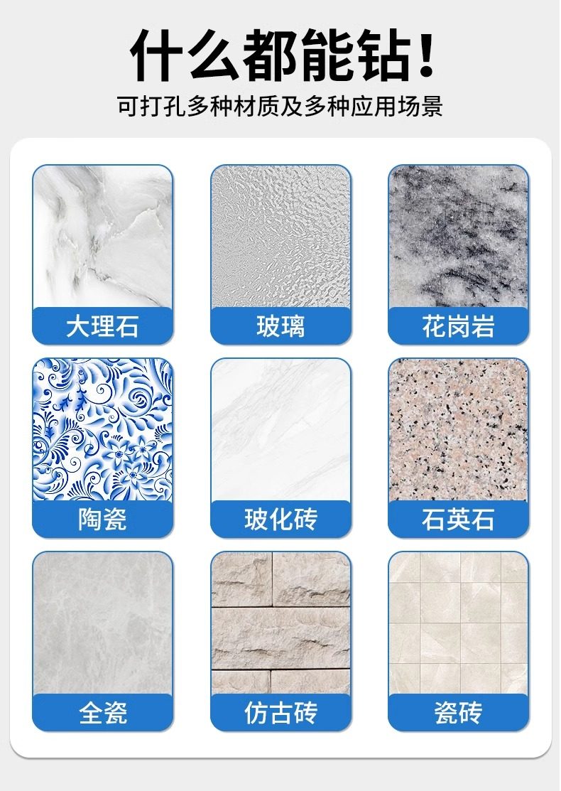 Dry Drilling Tool for Tiles, Drill Bit, Glass Hole Opener, Special Tool for Marble, Magnetic Flashlight, All-Ceramic Material