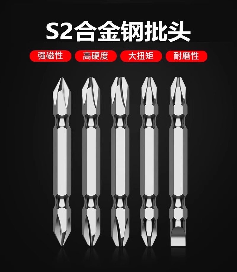 Magnetic Screwdriver Bit with Strong Magnetic Cross Head S2 High Torque Electric Drill Electric Screwdriver Extended Bit Double Head High Hardness
