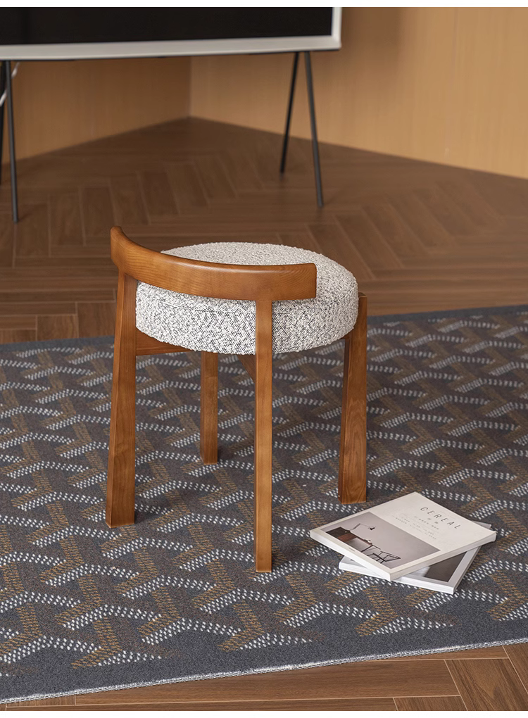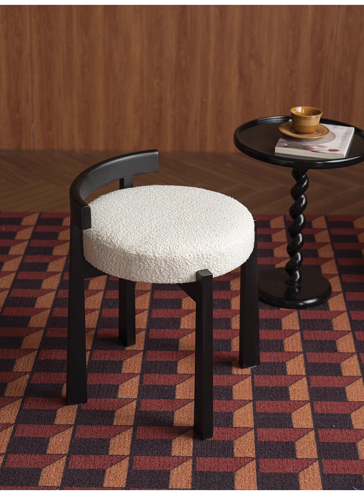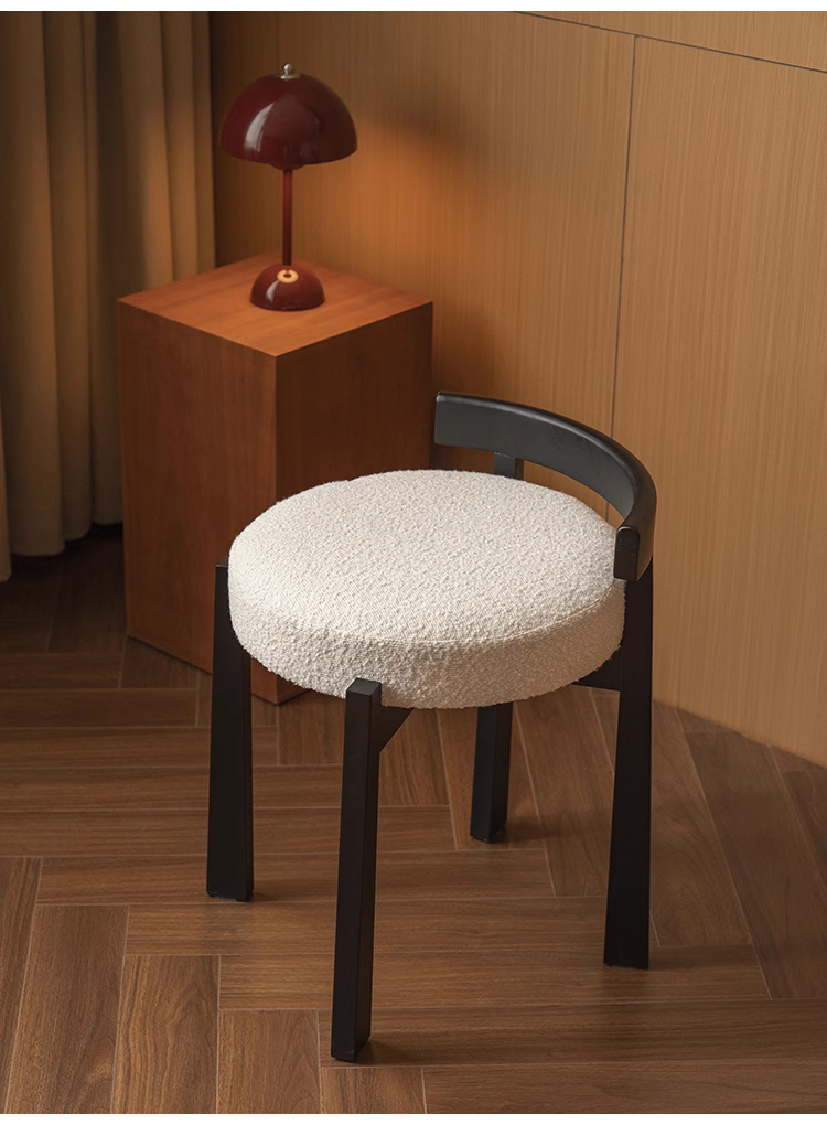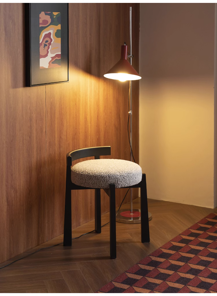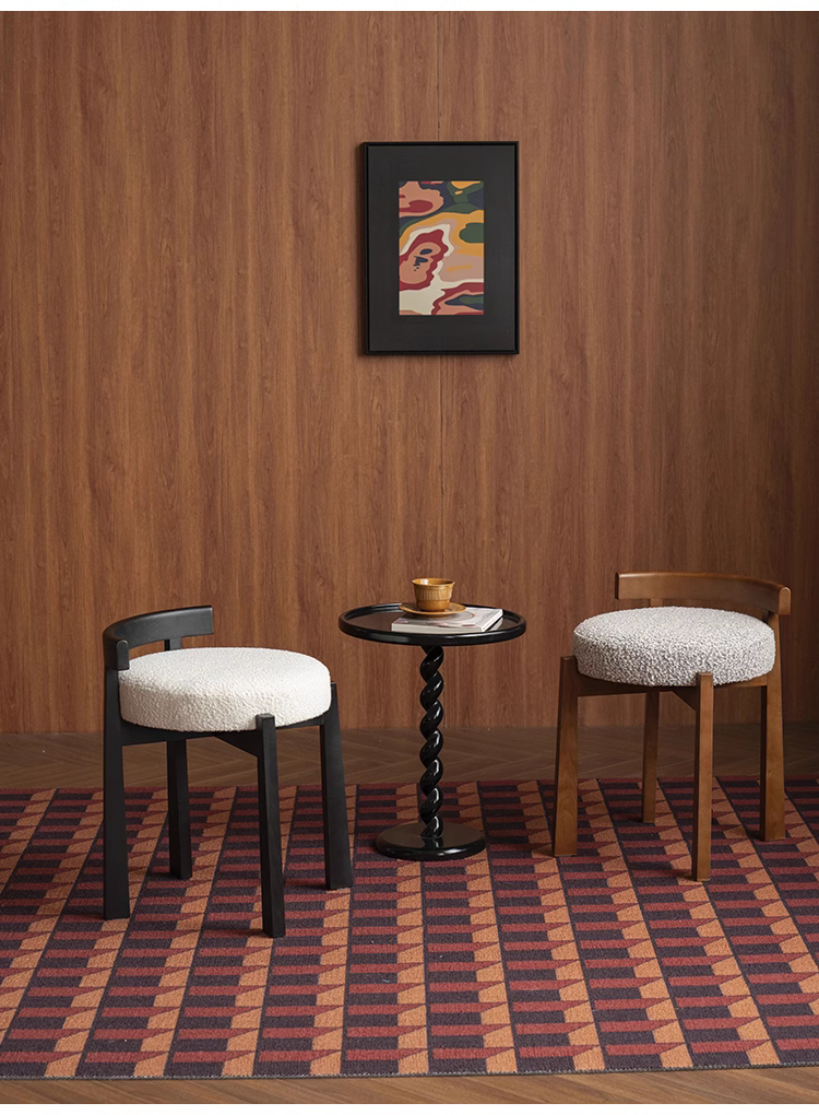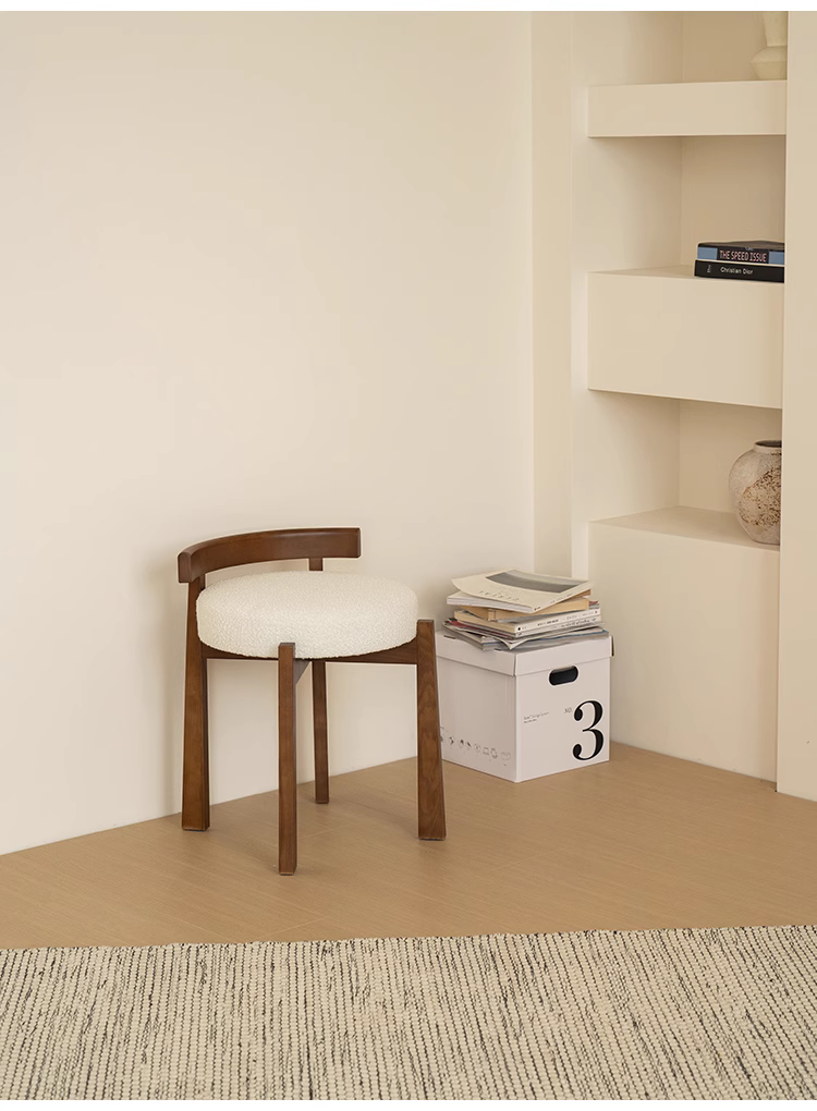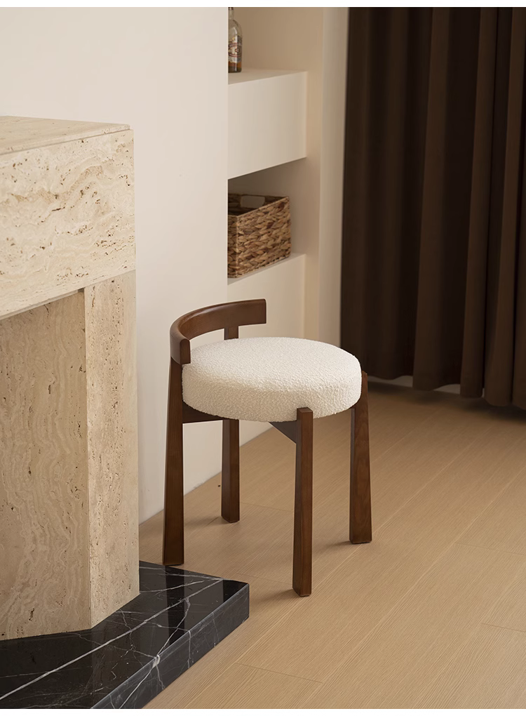 Retro Style Lamb Velvet Makeup Chair Round Stool Designer Dressing Table Chair Home Medium Solid Wood Island Bar Dining Chair